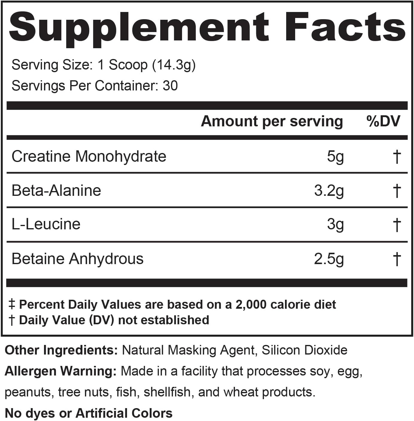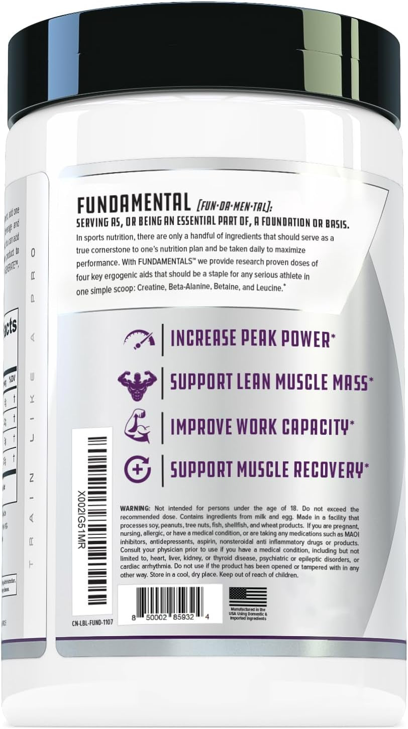 Fundamentals Intra or Post Workout Recovery Drink: 4 Key Ergogenic Aids for Maximum Performance and Muscle Growth: Creatine, Beta-Alanine, Betaine, and Leucine, 30 Servings, Unflavored