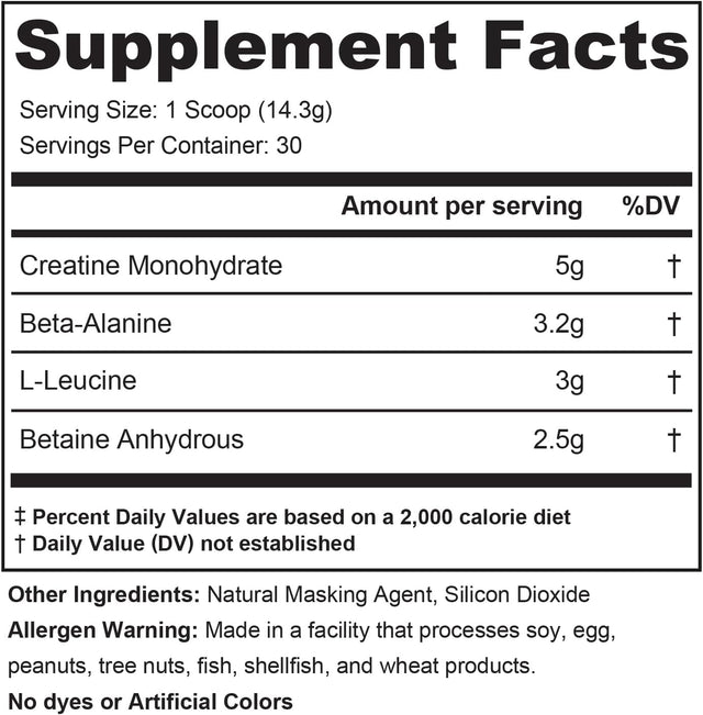 Fundamentals Intra or Post Workout Recovery Drink: 4 Key Ergogenic Aids for Maximum Performance and Muscle Growth: Creatine, Beta-Alanine, Betaine, and Leucine, 30 Servings, Unflavored is backordered and will ship as soon as it is back in stock.