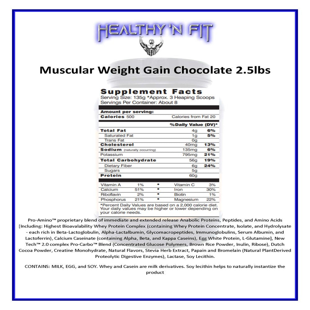 HEALTHY N FIT - Muscular Weight Gain, 2.5Lb -Chocolate - Time Release Protein, Creatine, Glutamine