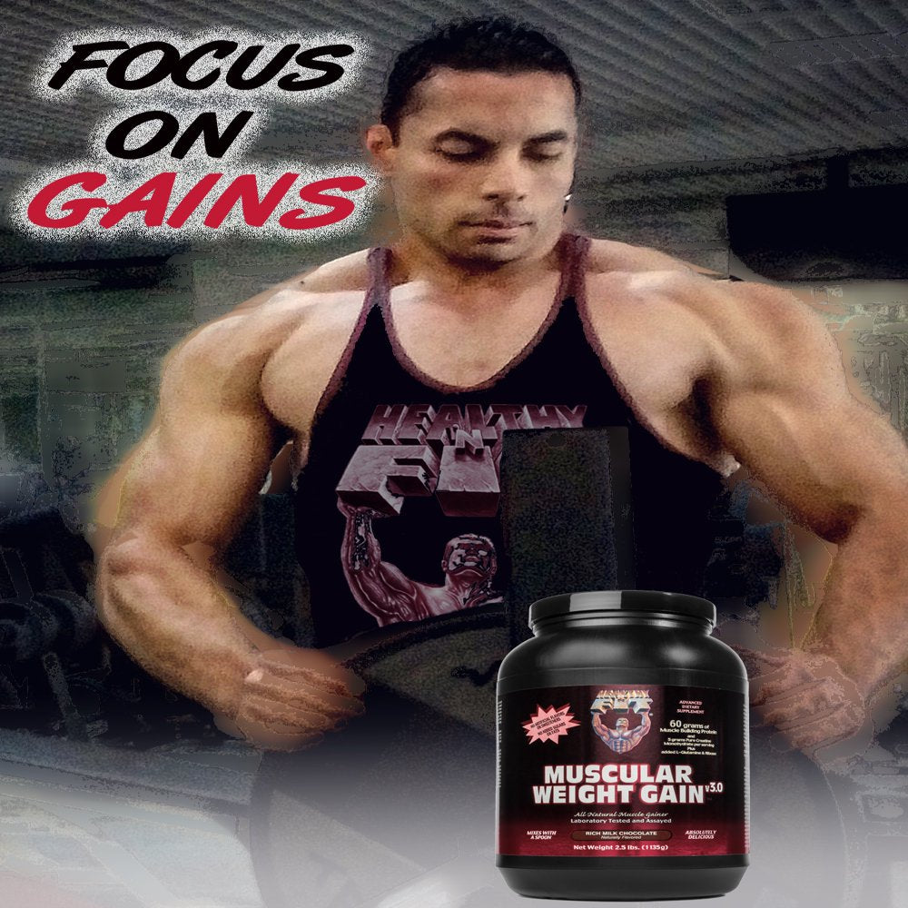 If you want to gain muscle mass, two of the most basic and important things you need are a sufficient amount of protein and a surplus of calories. The ladder is especially true for individuals who tend to have a fast metabolism or difficult time getting enough calories solely from the foods they eat. All calories are not created equal though, only calories from high quality protein can be used by the body to build muscle. About 50% of the calories in Muscular Weight Gain 3 come from protein, most other weight gainers have a lower percentage of protein content (they have more carbohydrates and less protein because carbs are much cheaper). MWG3 gives your these extra calories and protein in a delicious and easy to drink beverage, without extra added junk you don't want. We don't load our product up with added sugars and fats. It is low in saturated fat and cholesterol, and free from added sugars, fats, artificial flavors, colors, and sweeteners. Muscular Weight Gain 3 allows you to put on muscle the healthy and natural way, without overloading your system with additional bulk food. The Pro-Amino multi-source protein blend contains precisely formulated quantities of Whey, Casein, Egg proteins and hydrolysates to yield both an immediate surge of amino acids to stimulate muscle growth, as well as a slow release of amino acids to keep the body in an anabolic state and support muscle growth for several hours. We use only the highest quality whey concentrates and isolates, all of which are extracted via cold-processed micro-filtration technology, resulting in pure and undenatured proteins and amino acids which can be absorbed very quickly. The egg protein used is 100% pure egg albumen (egg white protein). The New Tech 2.0 Pro-Carbo complex carbohydrate blend contains an array of low-sugar, slow-digesting complex carbohydrates to fuel your workouts, replenish your glycogen stores, and give you the extra calories you need to gain muscular weight. Inulin and other complex carbs also provide over 3 grams of fiber per serving. The original Muscular Weight Gain was introduced over 25 years ago, at a time when weight gainers were loaded with excess sugar, were often only 25% protein, and frequently contained several hundred carbs per serving. These weight gainers were cheap for supplement companies to produce (carbs are notably cheaper than protein), and certainly cause a weight gain, but often much of it was fat. The original formula was revolutionary at this time and raised the bar with its high protein content, lower sugar content, and lack of excessive carbohydrates. It was also innovative in that it was one of the first weight gainers to be all natural, most others contained artificial flavors and some added aspartame later. Muscular Weight Gain 2 replaced the original formula in the late 1990's. MWG2 took high quality weight gainers to the next level by adding a higher concentration of protein, adding several key muscle building ingredients (including L-Glutamine, Ribose, and a full potency dose of Creatine Monohydrate), and by making the product instant so it could easily mix with a spoon. This third generation formulation represents over 25 years of product improvements and refinements over the prior formulas, as well as the incorporation of the latest sciences and technology available for muscle gainer formulations, giving you a formulation which is both cutting edge and time tested. Muscular Weight Gain 3 ha