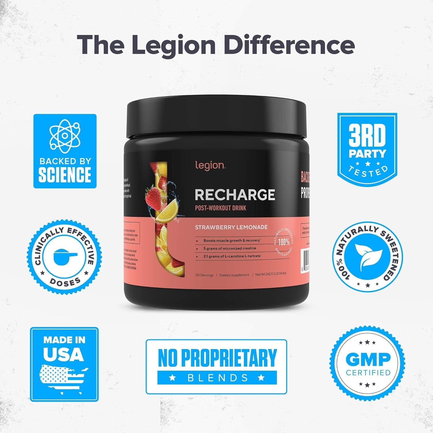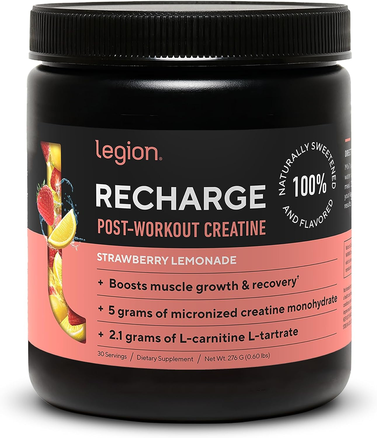 LEGION Recharge Post Workout Supplement - All Natural Muscle Builder & Recovery Drink with Micronized Creatine Monohydrate Naturally Sweetened & Flavored, (Strawberry Lemonade, 30 Serve)