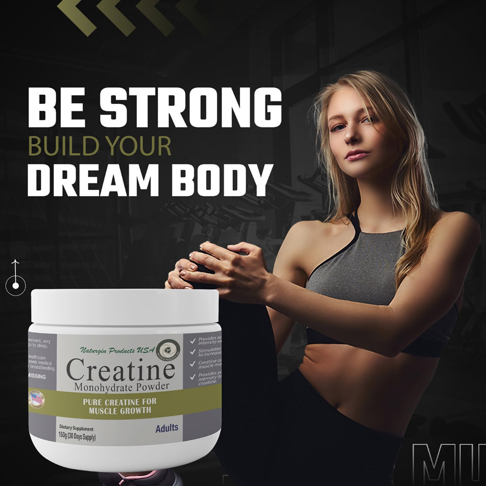 Naturgin Products USA Pure Creatine Monohydrate Powder without Flavor, Muscle Recovery, Metabolism Booster Dietary Supplements - 150G