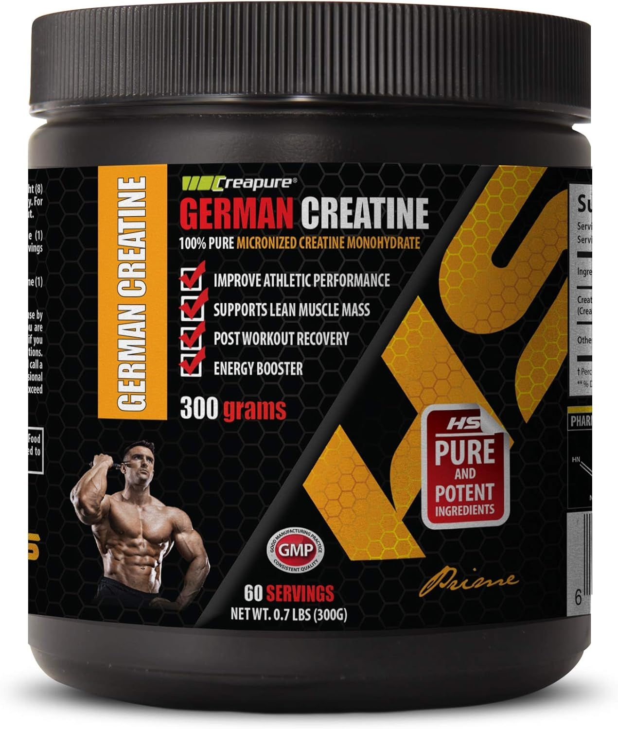 pre workout muscle growth - GERMAN CREATINE POWDER - 100% PURE MICRONIZED CREATINE MONOHYDRATE - Creatine for bodybuilding - 1 Can 300 grams (60 Servings)