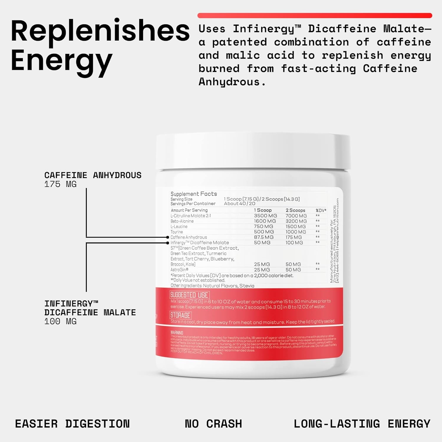 Pre Workout Powder, 40 Servings, No Creatine, Clinically Studied Patented Ingredients, Clean Caffeine Preworkout, No Sugar, No Sucralose, No Jitters, Natural Flavor, Fruit Punch is backordered and will ship as soon as it is back in stock.
