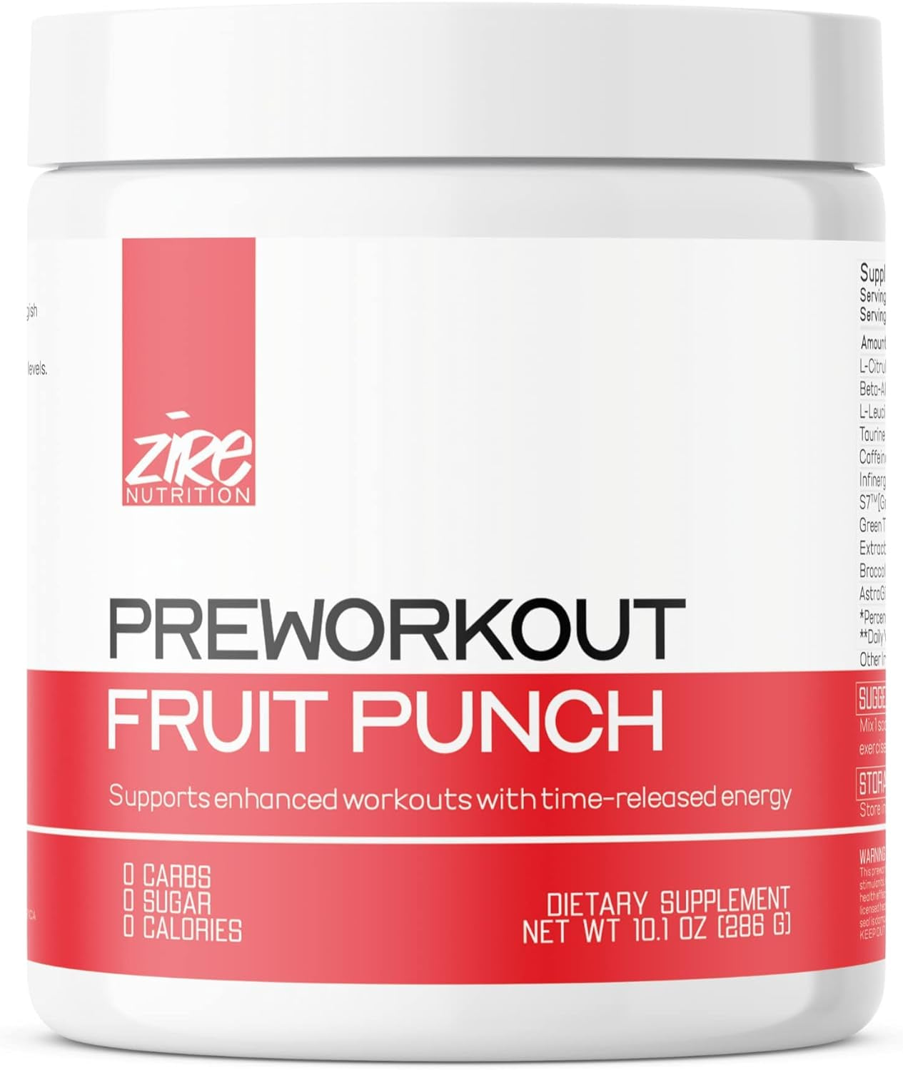 Zire Nutrition Preworkout Powder, Fruit Punch, 40 Servings
