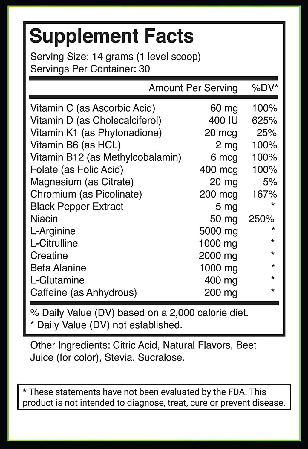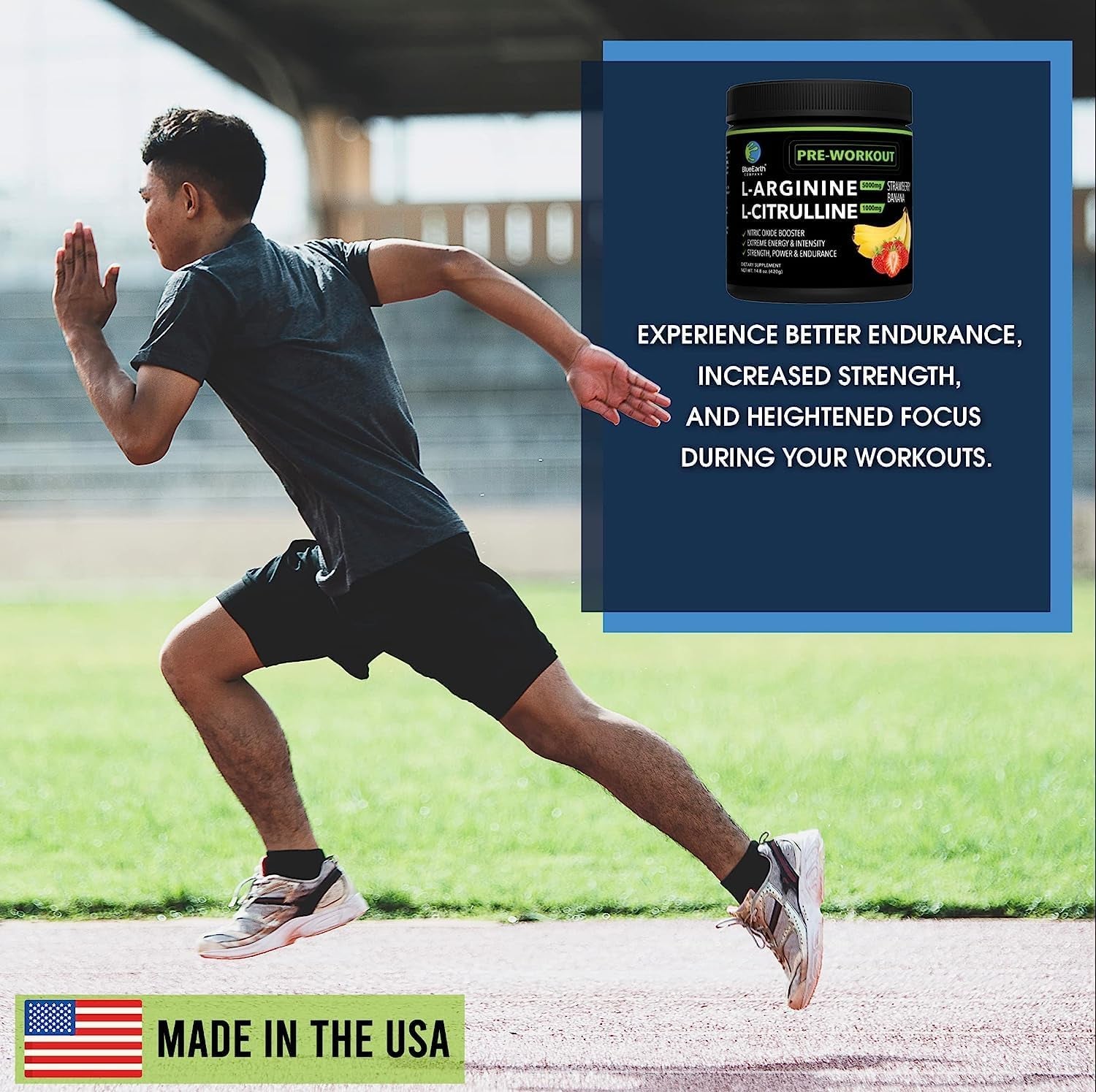 Pre Workout Powder L Arginine 5000Mg L Citrulline 1000Mg Supplement, Nitric Oxide Booster, Creatine Monohydrate, Beta Alanine, Caffeine, Preworkout Energy Drink Mix, Men & Women