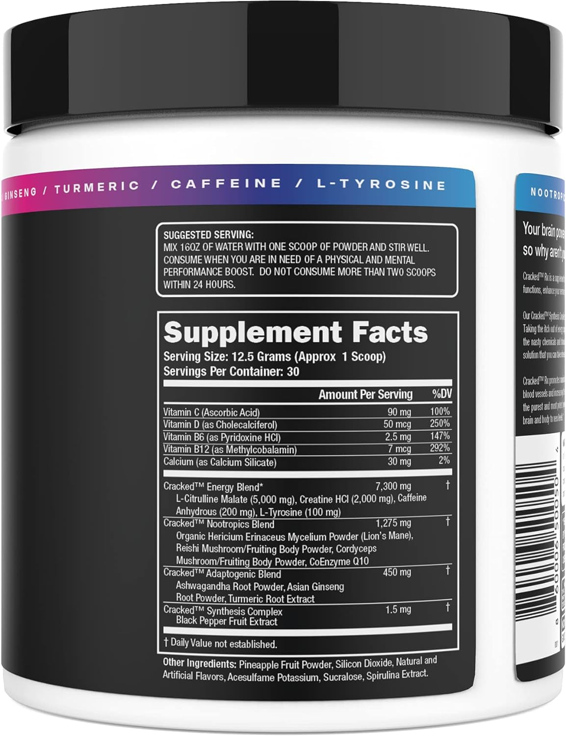 - ✔ Creatine HCL, L-Citrulline Malate, L-tyrosine to maximize blood flow and blood oxygen levels