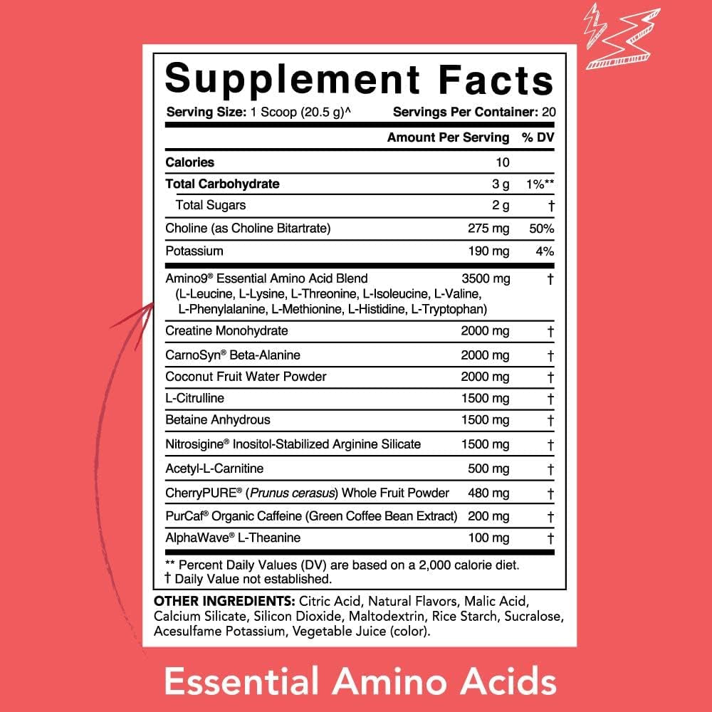 - Fuel your Workouts | Organic Caffeine + L-theanine with German Sourced Creatine, Beta-Alanine, Acetyl- L-Carnitine, Cherry Extract, & 9 Essential Amino Acids
