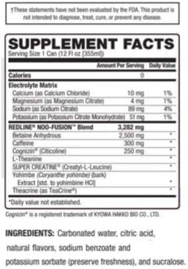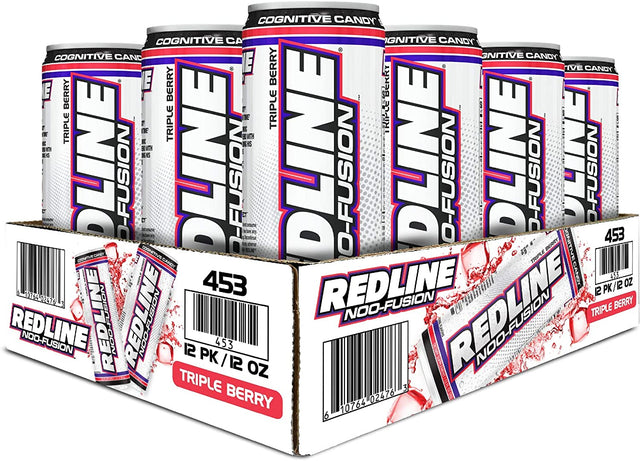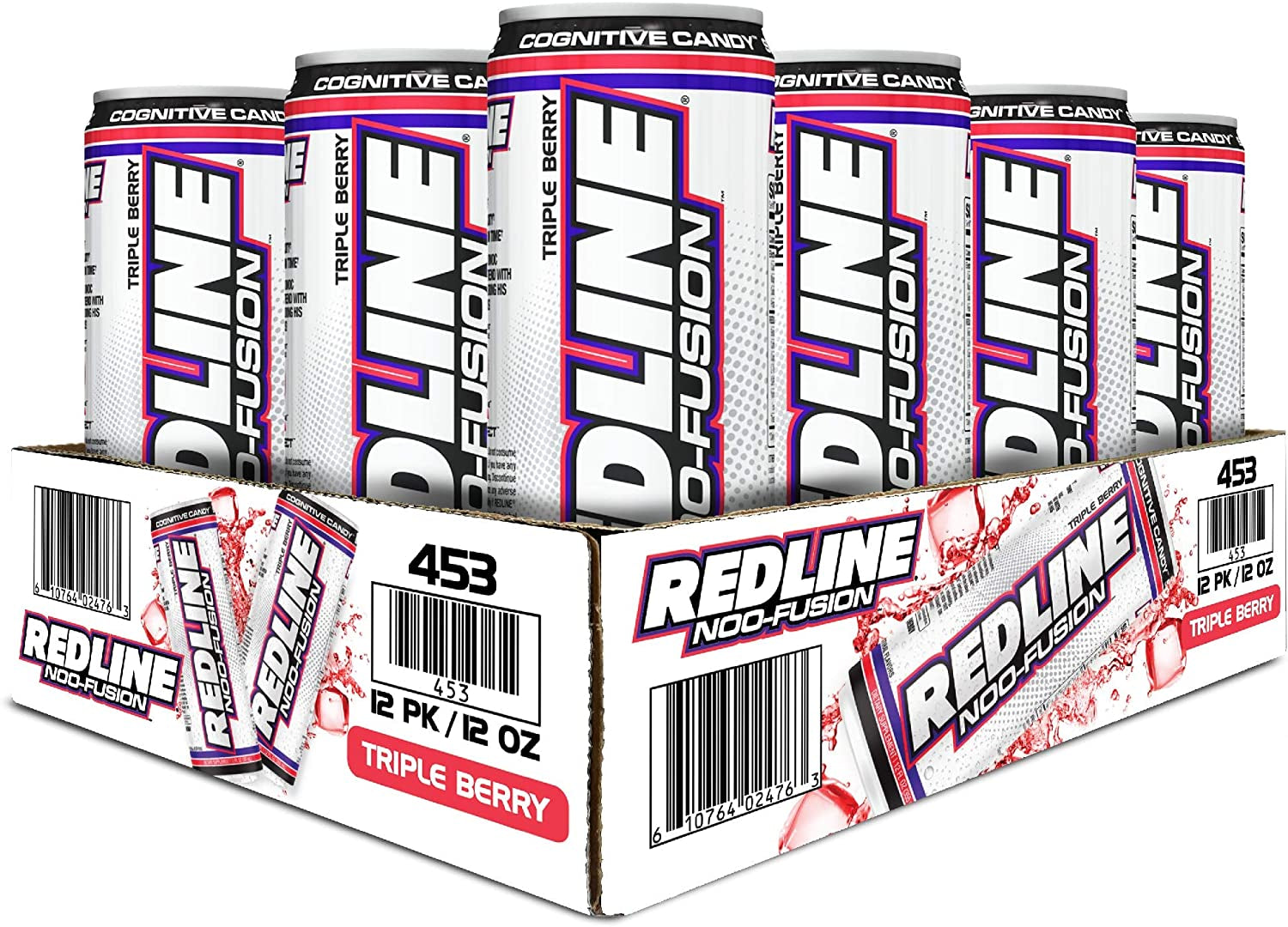 VPX Redline Noo-Fusion - Carbonated Preworkout & Cognitive Enhancing - Sports Nutrition Energy Drink with Caffeine, Noo-Fuel, Super Creatine, Amino Acids - 12 X 12 Fl Oz Cans (Triple Berry)