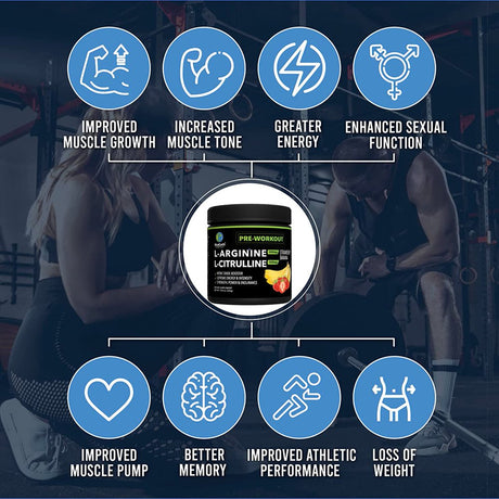 Blueearth Company Pre Workout Powder, Creatine, L-Arginine, L-Citrulline, Nitric Oxide, 30 Servings