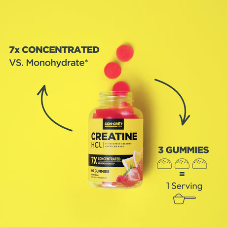 CON-CRET Concentrated Creatine Gummies, Berry Zing Flavor, Supports Muscle & Brain Health, 60 Ct