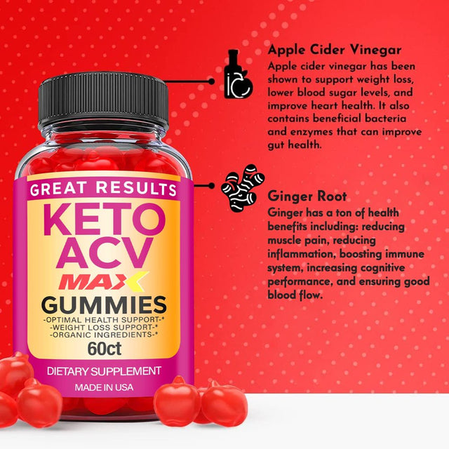 Our Great Results Max Gummies (Sell Package Quantity 5 pack) contain Apple Cider Vinegar; these act as a cellular energy source and help your body to burn fat. The ingredients of these gummies actively use fats instead of carbs to provide energy to your body throughout your day. These gummies provide an energy boost for women & men alike to effectively support their weight loss goals.