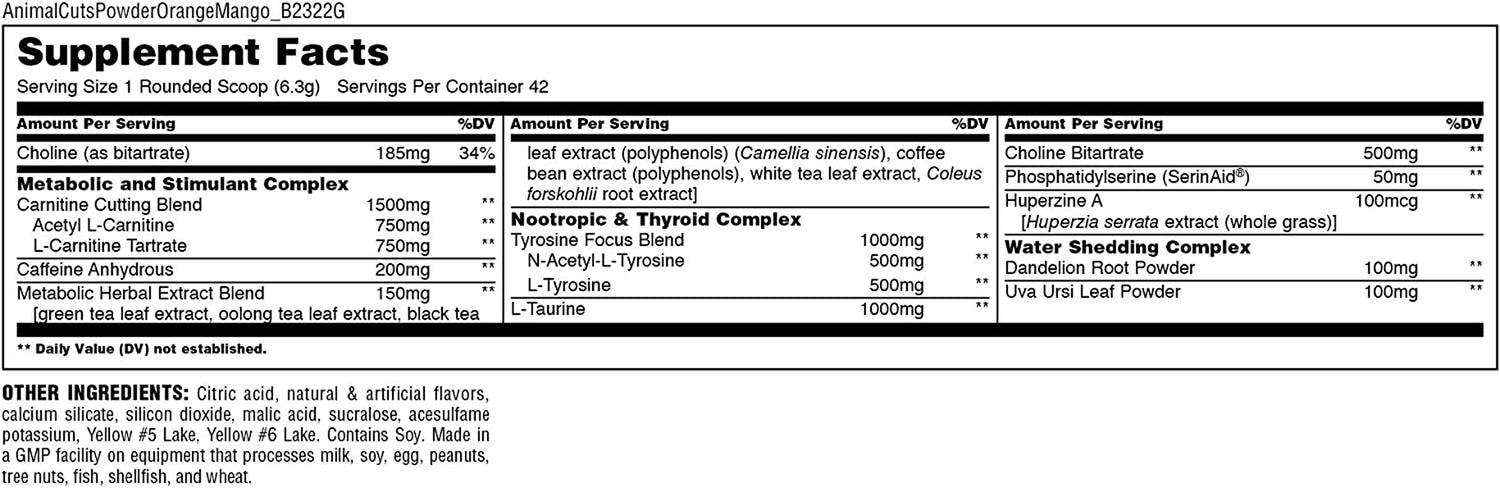Animal Cuts Powder – Weight Management Supplement – Fat Burner, Metabolic Enhancer with Nootropics, Carnitine, Tyrosine, Diuretic – Orange Mango Flavor, 8.3 Oz, 42 Count - 42 Servings (Pack Of 1) is backordered and will ship as soon as it is back in stock.