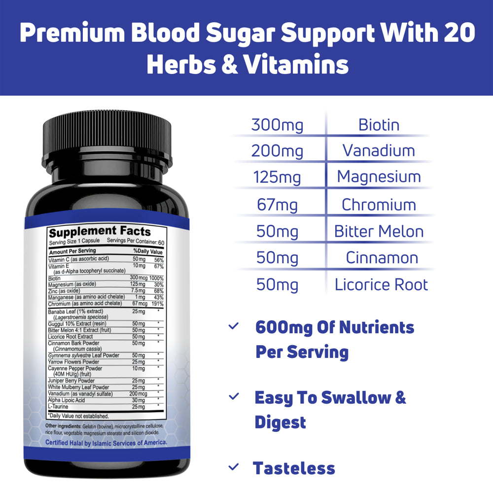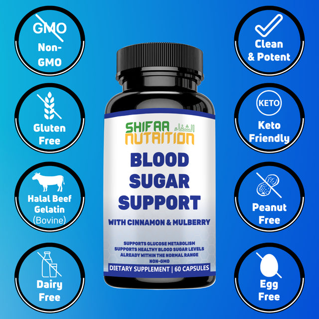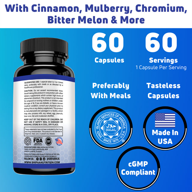 Blood Sugar Support Supplement by SHIFAA NUTRITION | Promotes Healthy Blood Sugar Levels, Glucose Metabolism, Weight Management & Cardiovascular Health | GLUTEN-FREE | NON-GMO | HALAL | 60 Servings