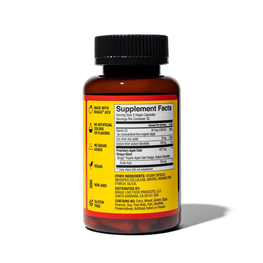 Bragg Apple Cider Vinegar Capsules - Vitamin D3 & Zinc - 750Mg of Acetic Acid - Immune & Weight Management Support - Non-Gmo, Vegan, Gluten Free, No Sugar (1)