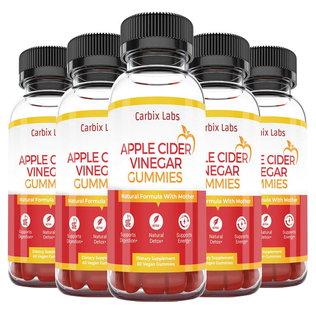 Carbix Labs Apple Cider Vinegar Gummies - Natural Formula with Mother - Supports Digestion & Energy - Complete Detox and Cleanse – Weight Management Gummy 5-Pack