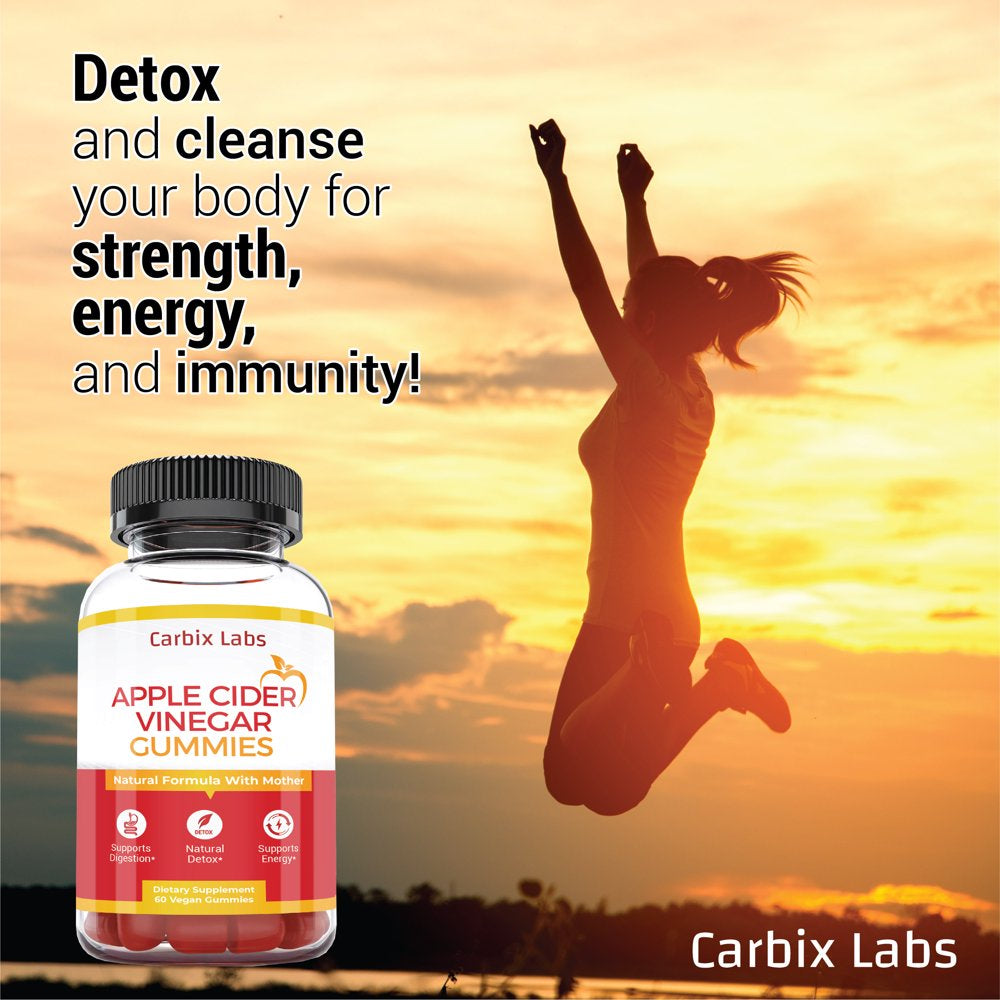 - CLEANSE & DETOX SUPPORT: Each gummy of Carbix Labs Apple Cider Vinegar Gummies is to help in aiding to resolve detoxing your body. Naturally rid your body of unwanted toxins. It helps to cleanse the digestive tract & reduce bloating. Just take 2 Apple Cider Vinegar gummies a day to eliminate toxins from the body and help you feel refreshed.