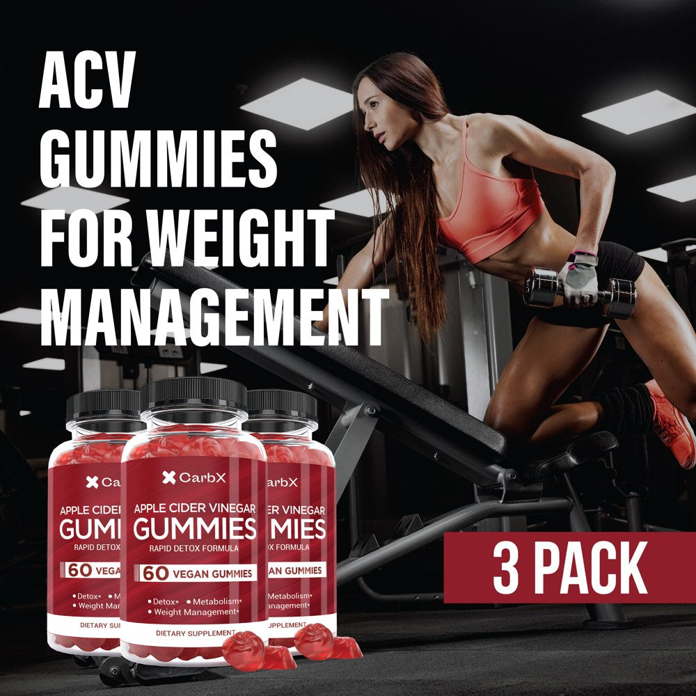 Carbx Apple Cider Vinegar Gummies - Rapid Detox Formula - Weight Management & Boosts Metabolism - Helps Detox and Cleanse - Gluten & GMO Free - Vegan Friendly (3-Bottles)