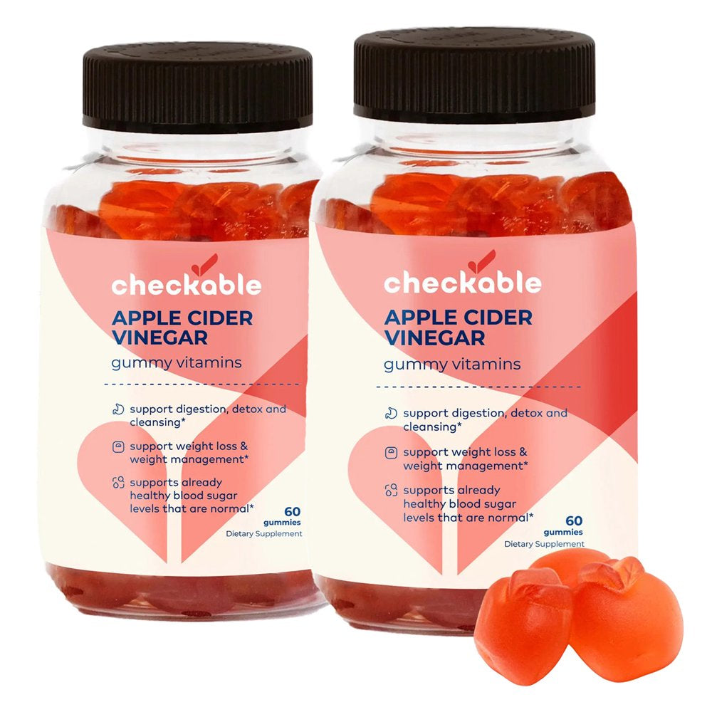 Checkable® Apple Cider Vinegar Gummies - Support for Weight Management, Digestion, Gut Health, Detoxing, and More - Vegan, Gluten-Free, Non-Gmo Formula - 120 Gummies - 60 Count (Pack Of 2) / 120 is backordered and will ship as soon as it is back in stock.