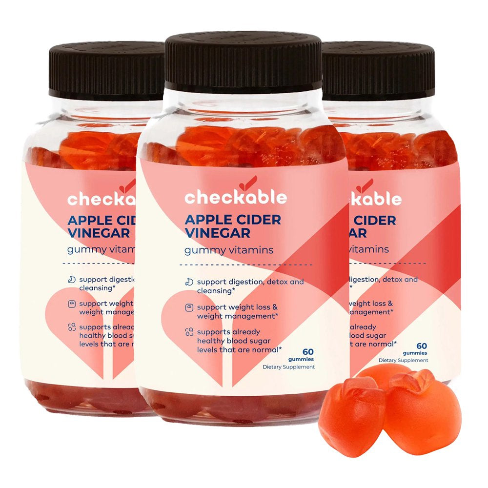 Checkable® Apple Cider Vinegar Gummies - Support for Weight Management, Digestion, Gut Health, Detoxing, and More - Vegan, Gluten-Free, Non-Gmo Formula - 180 Gummies - 60 Count (Pack Of 3) / 180 is backordered and will ship as soon as it is back in stock.