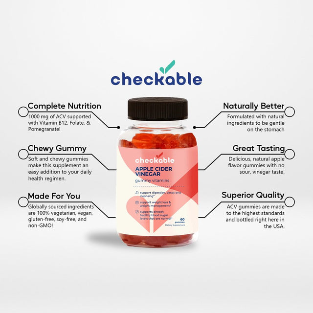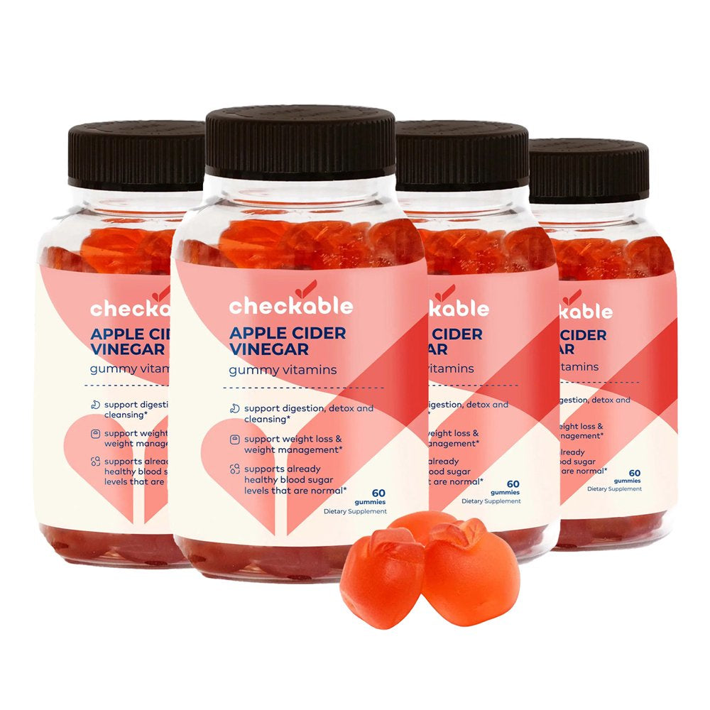 Checkable® Apple Cider Vinegar Gummies - Support for Weight Management, Digestion, Gut Health, Detoxing, and More - Vegan, Gluten-Free, Non-Gmo Formula - 240 Gummies - 60 Count (Pack Of 4) / 240 is backordered and will ship as soon as it is back in stock.