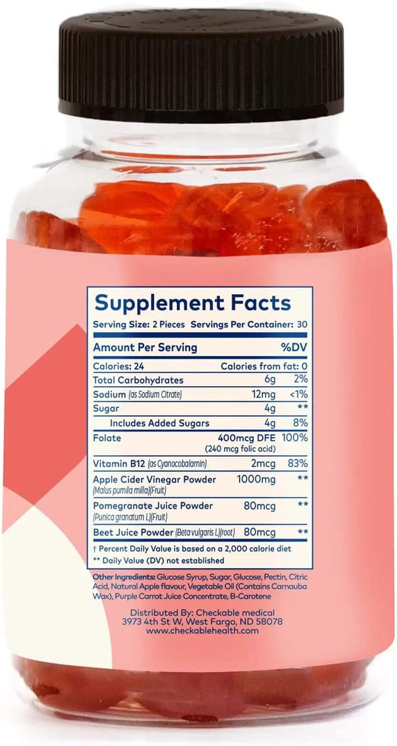 Checkable® Apple Cider Vinegar Gummies - Support for Weight Management, Digestion, Gut Health, Detoxing, and More - Vegan, Gluten-Free, Non-Gmo Formula - 60 Gummies - 60 Count (Pack Of 1) is backordered and will ship as soon as it is back in stock.