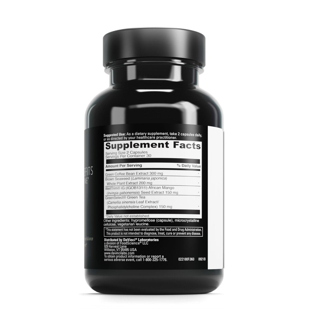 Ingredients: Green Coffee Bean Extract, Brown Seaweed (Laminaria japonica) Whole Plant Extract, WellTrim iG (IGOB131) African Mango (Irvingia gabonensis) Seed Extract, GreenSelect Green Tea Phytosome (Camellia sinensis Leaf Extract/ Phosphatidylcholine Complex)