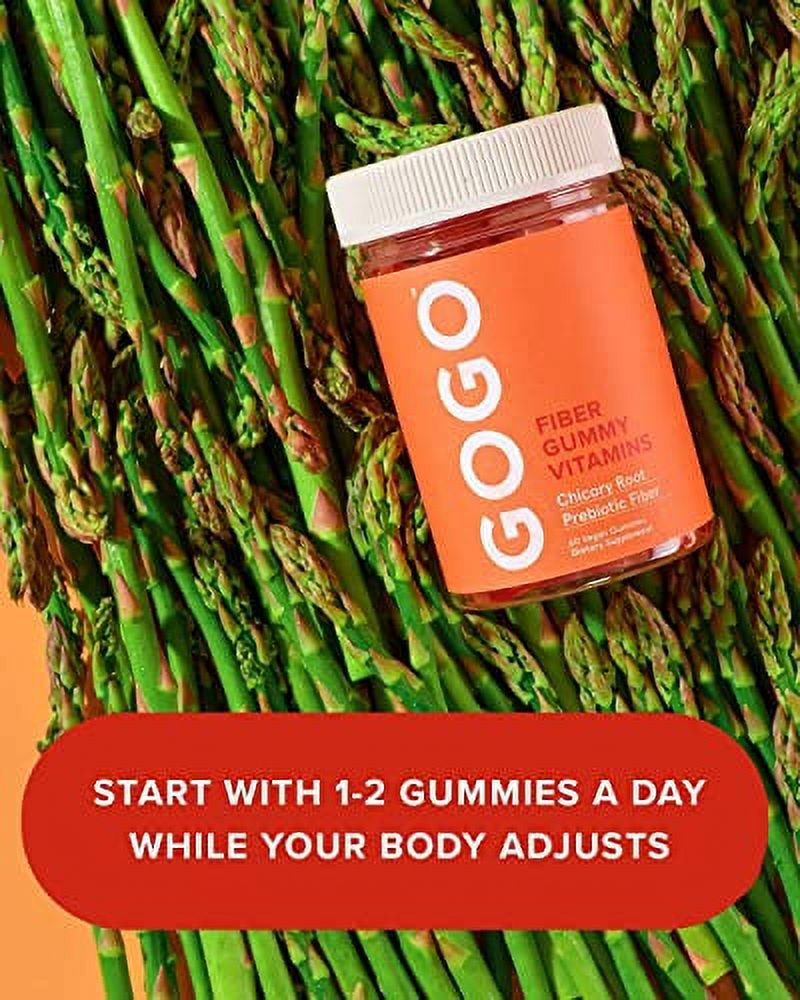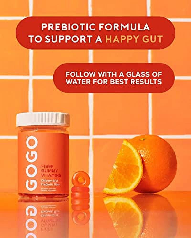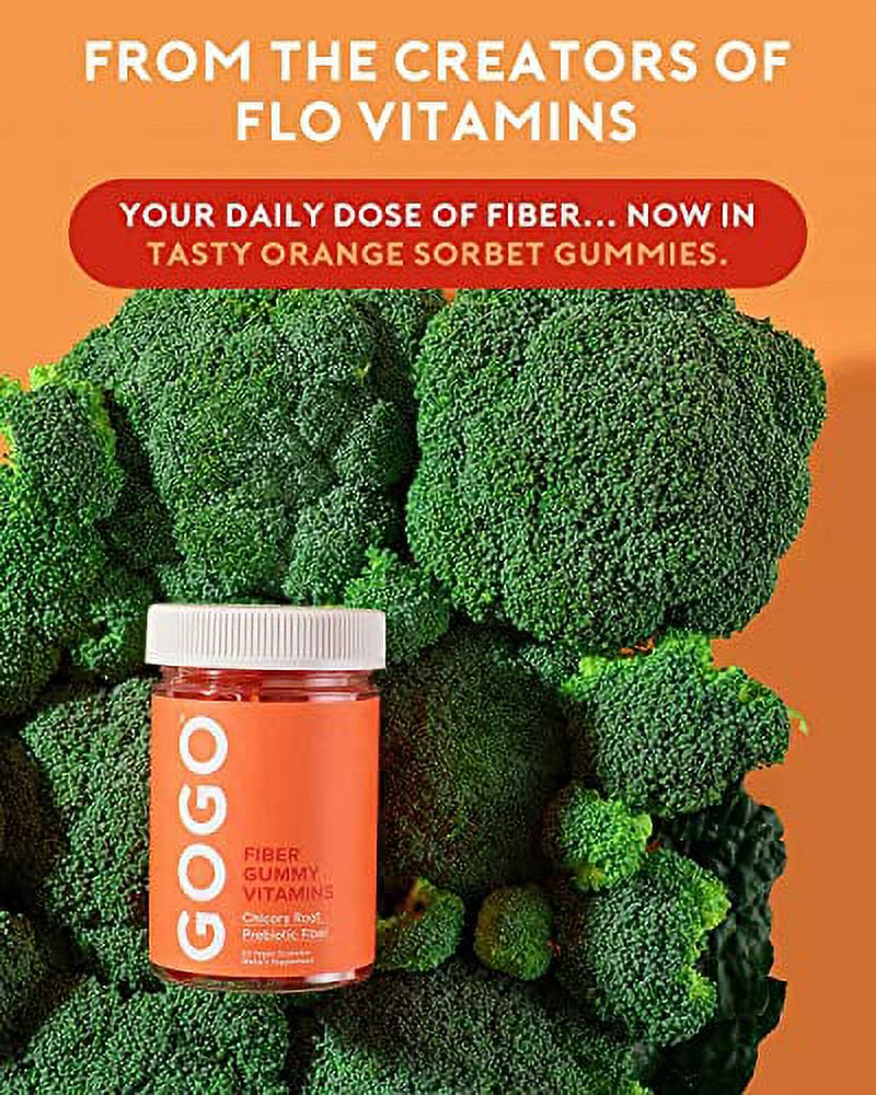 About this itemFEEL LIGHTER WITH GOGO - Fiber Supplement gummies, the daily dietary fiber supplement that helps you get regular when taken regularly. Get your daily dose of fiber in the form of orange sorbet flavored chewable gummies. We recommend taking GOGO for 2 weeks with a glass of water to start seeing results. If you have a sensitivity to inulin, ragweed, or birch pollen consult with your physician before taking GOGO.FROM THE CREATORS OF FLO VITAMINS - These gummies support gut health with the natural prebiotic benefits of chicory root fiber.WEIGHT MANAGEMENT - This fiber supplement for women enhances constipation relief when you chew 2 gummies a day. If you're trying GOGO for the first time, try starting with 1 or 2 a day while your body adjusts to your increased fiber intake. In excess, GOGO's key ingredients may cause intestinal discomfort and gas.CLEAN INGREDIENTS FOR A HAPPY GUT - GOGO Prebiotic Fiber Gummies are made with plant-based ingredients that are vegan friendly, gluten-free, non-GMO, and cruelty free.LOVE IT OR YOUR MONEY BACK - Buy with confidence with our 100% satisfaction guarantee - if you don't love these fiber gummies within 30 days, we'll make it right for you.