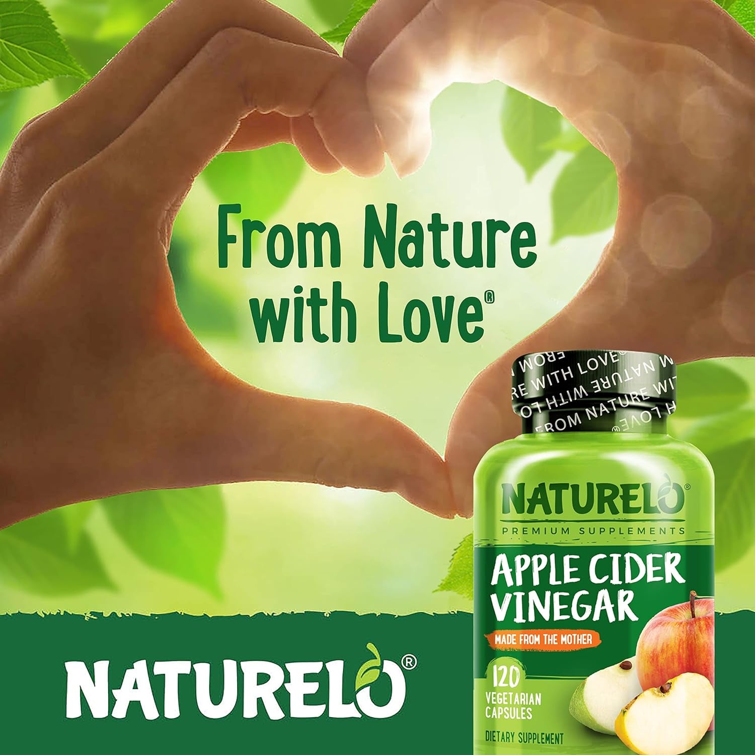 NATURELO Apple Cider Vinegar Capsules - Natural ACV with Mother Supplement for Men & Women for Detox, Cleanse and Weight Management - 120 Vegan Capsules
