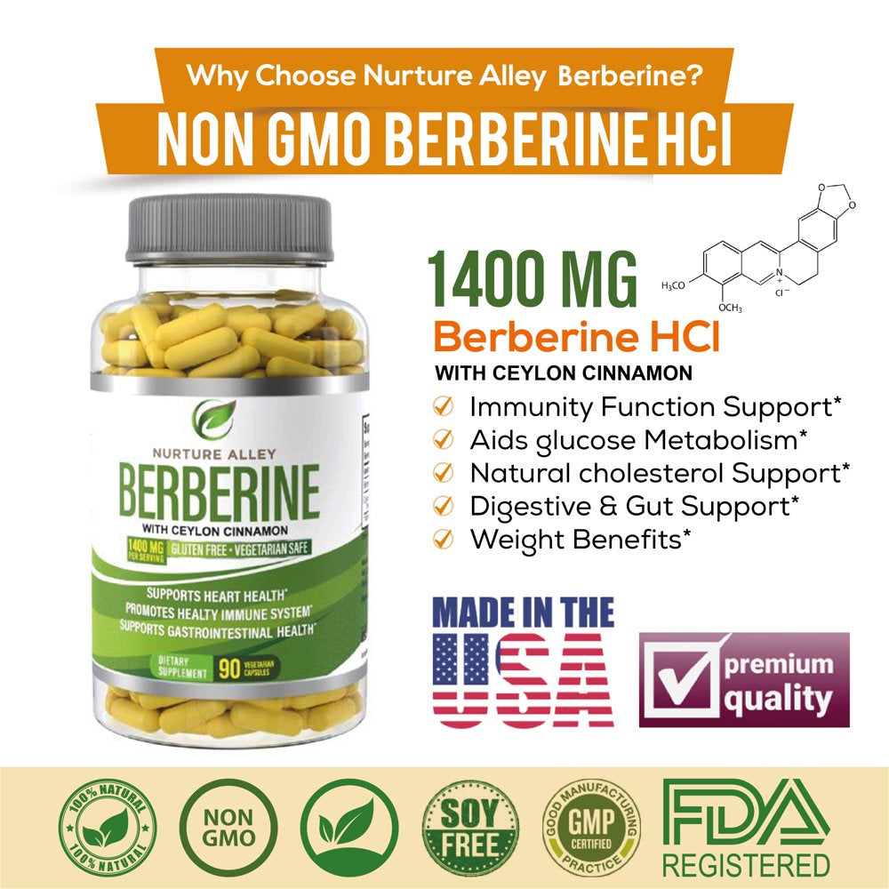 | Product Name | Nurture Alley Berberine Hcl 1400mg - Berberine Hcl 1200mg Plus Organic Ceylon Cinnamon 200mg - 90 Capsules - Supports Glucose Metabolism, Weight Management |