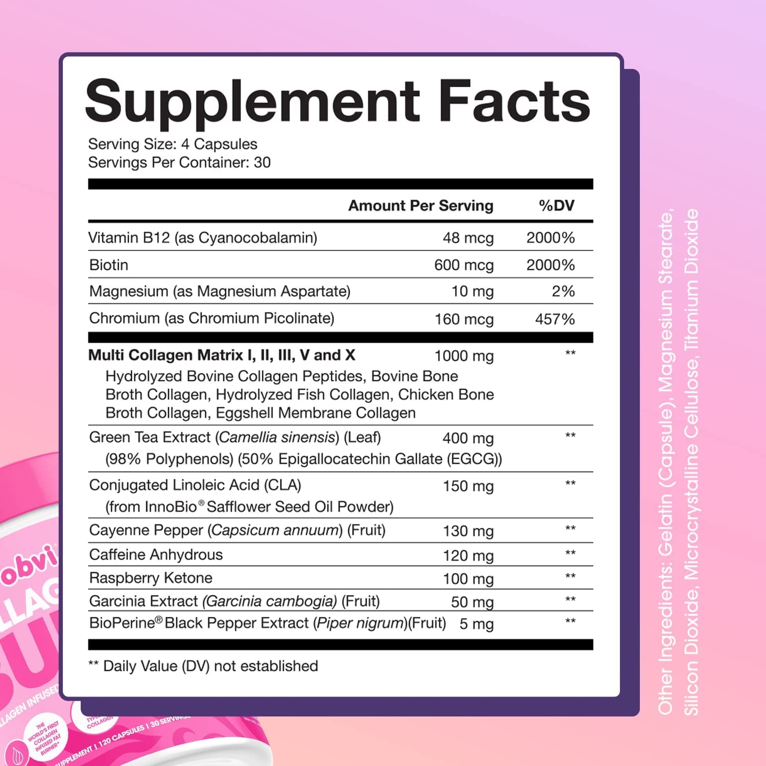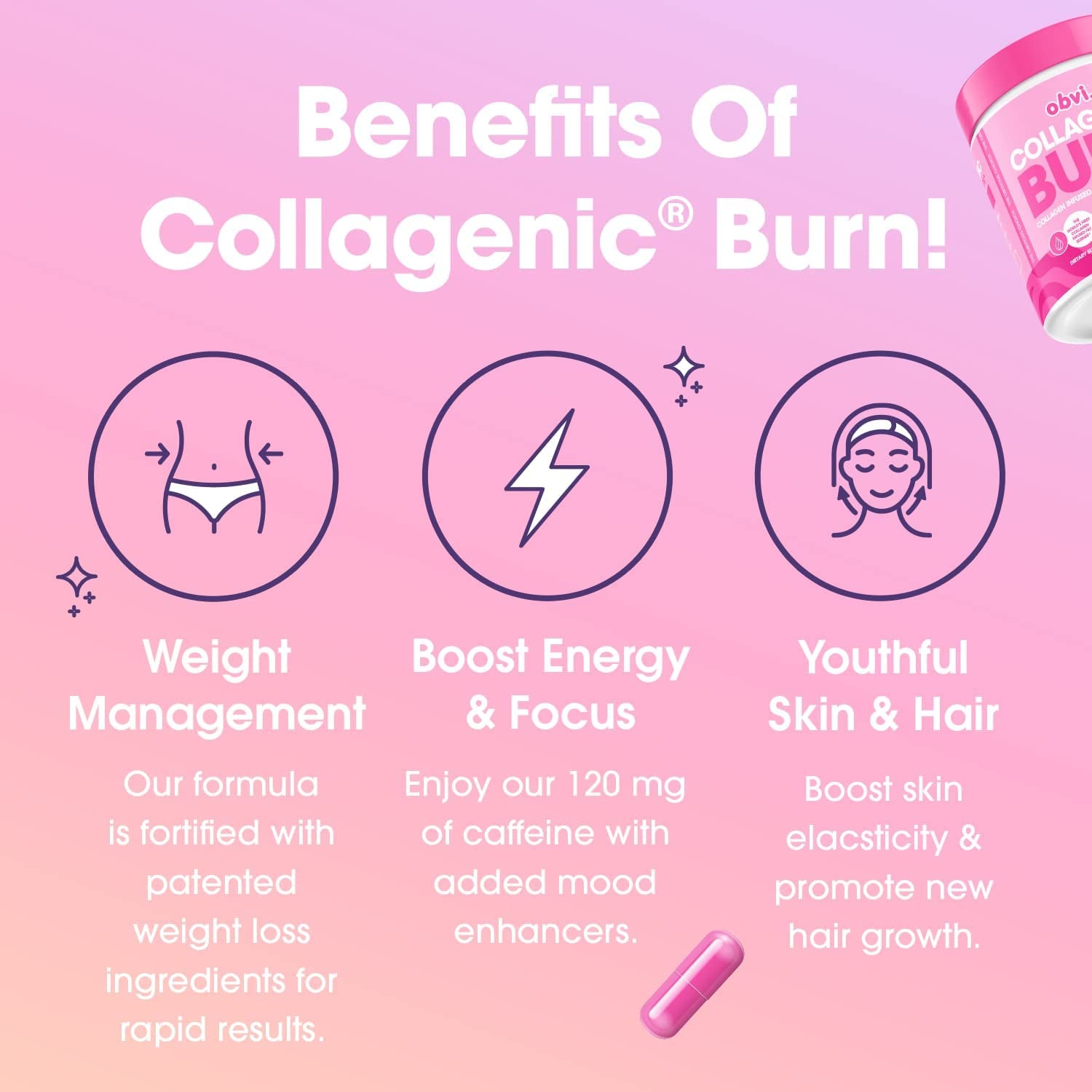 Obvi Collagenic Burn, Collagenic Fat Burner, Thermogenic Fat Burner for Weight Loss, Weight Management, Youthful Skin and Hair, Capsule Color May Vary (30 Servings,120 Capsules)