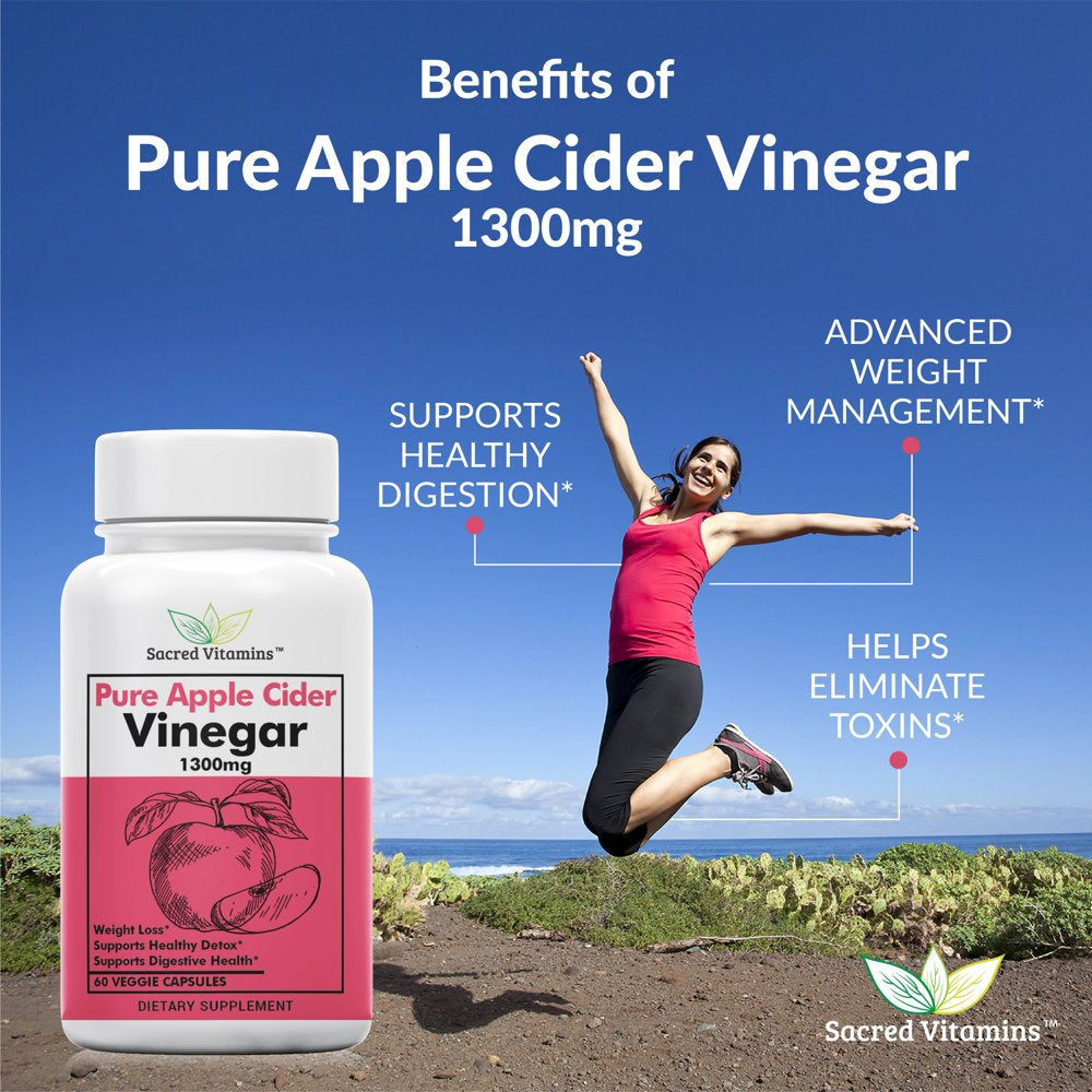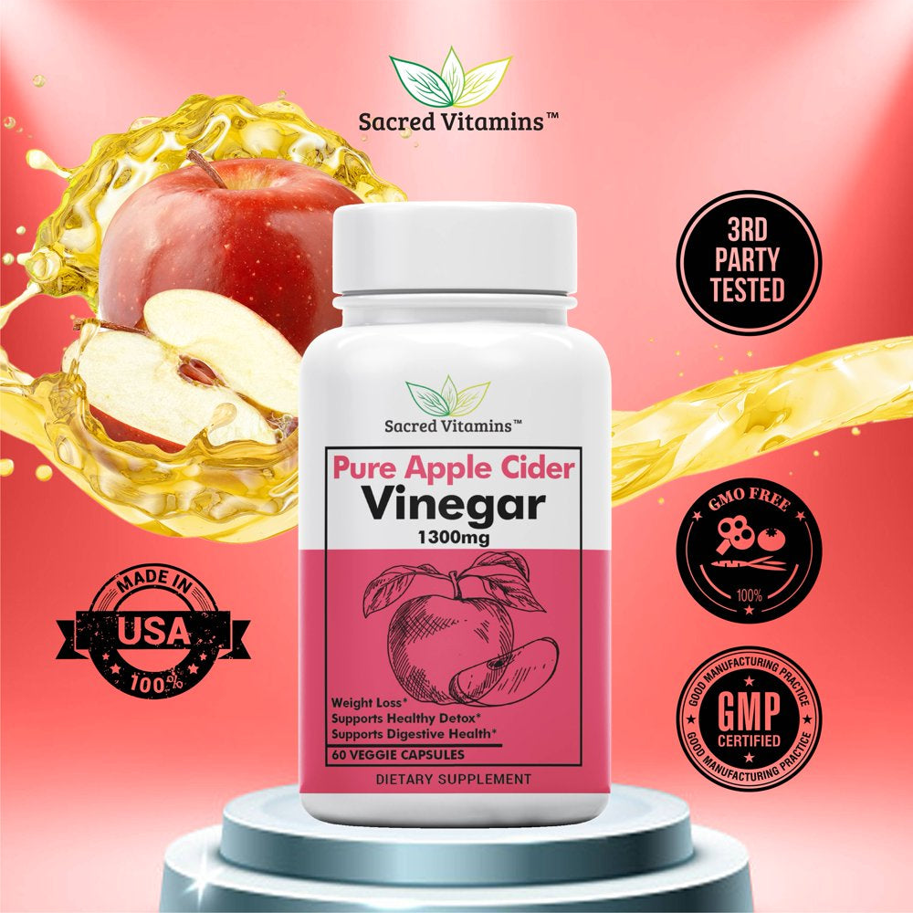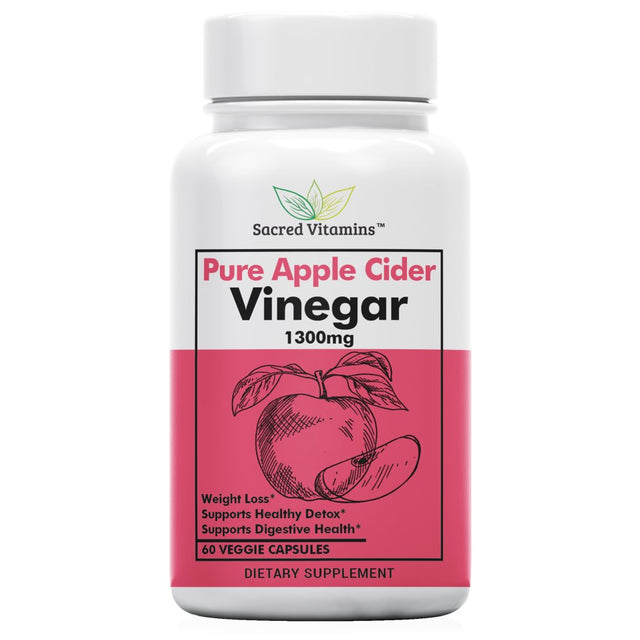 The Ultimate Apple Cider Vinegar Capsules for Year-Round Support!Our specially blended organic apple cider vinegar capsules are formulated with only pure Apple Cider Vinegar Extract delivering all the amazing health benefits straight to your entire body!Our complete apple cider vinegar supplements will enable your body to absorb and utilize all the benefits the best apple cider supplements have to offer. As an innovator in the weight management space, our ACV formula for women and men gets to work fast and protects your body from potential ailments.4 AMAZING BENEFITS OF NATURAL APPLE CIDER VINEGAR:- Improved Energy*- Improved Digestive Health*- Cleanse and Detox the Body*- Metabolism Support*Don’t rely on trendy weight management and appetite suppressants that are made with preservatives and fillers! We at Sacred Vitamins have developed a natural apple cider vinegar capsule for optimal performance, helping you feel your best when you need it most.Get your Health and Mind on the Right Track with Sacred Vitamins Complete Apple Cider Vinegar Supplement!