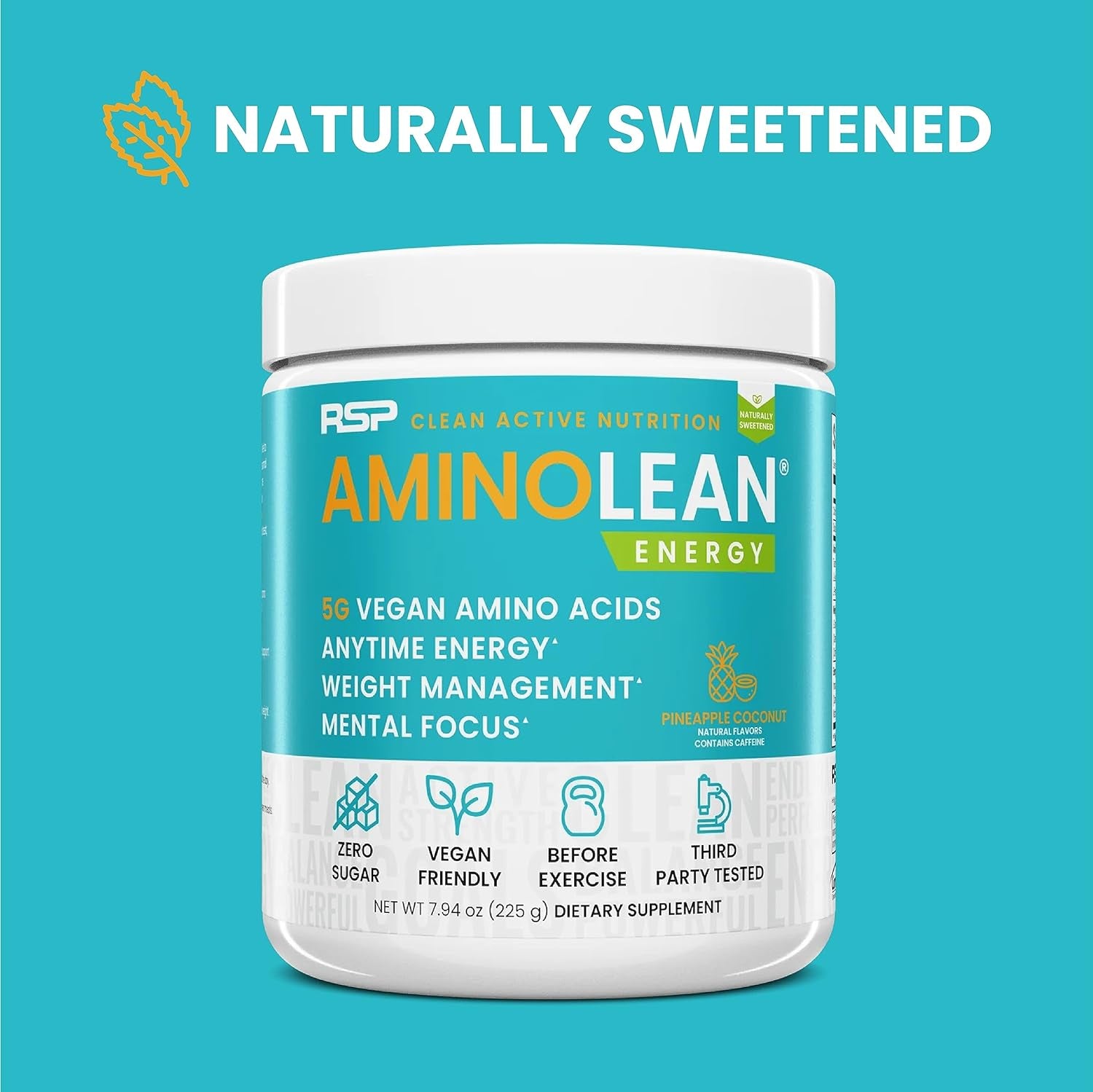 RSP Vegan Aminolean – All-In-One Natural Pre Workout, Amino Energy, Weight Management with Vegan Bcaas, Complete Vegan Preworkout Powder, Pineapple Coconut