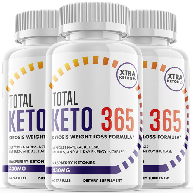 Total Keto 365 Pills (3 Pack) contain Raspberry Ketones; these act as a cellular energy source and help your body to burn fat. The ingredients of these pills actively use fats instead of carbs to provide energy to your body throughout your day. These pills provide an energy boost for women & men alike to effectively support their weight loss goals.