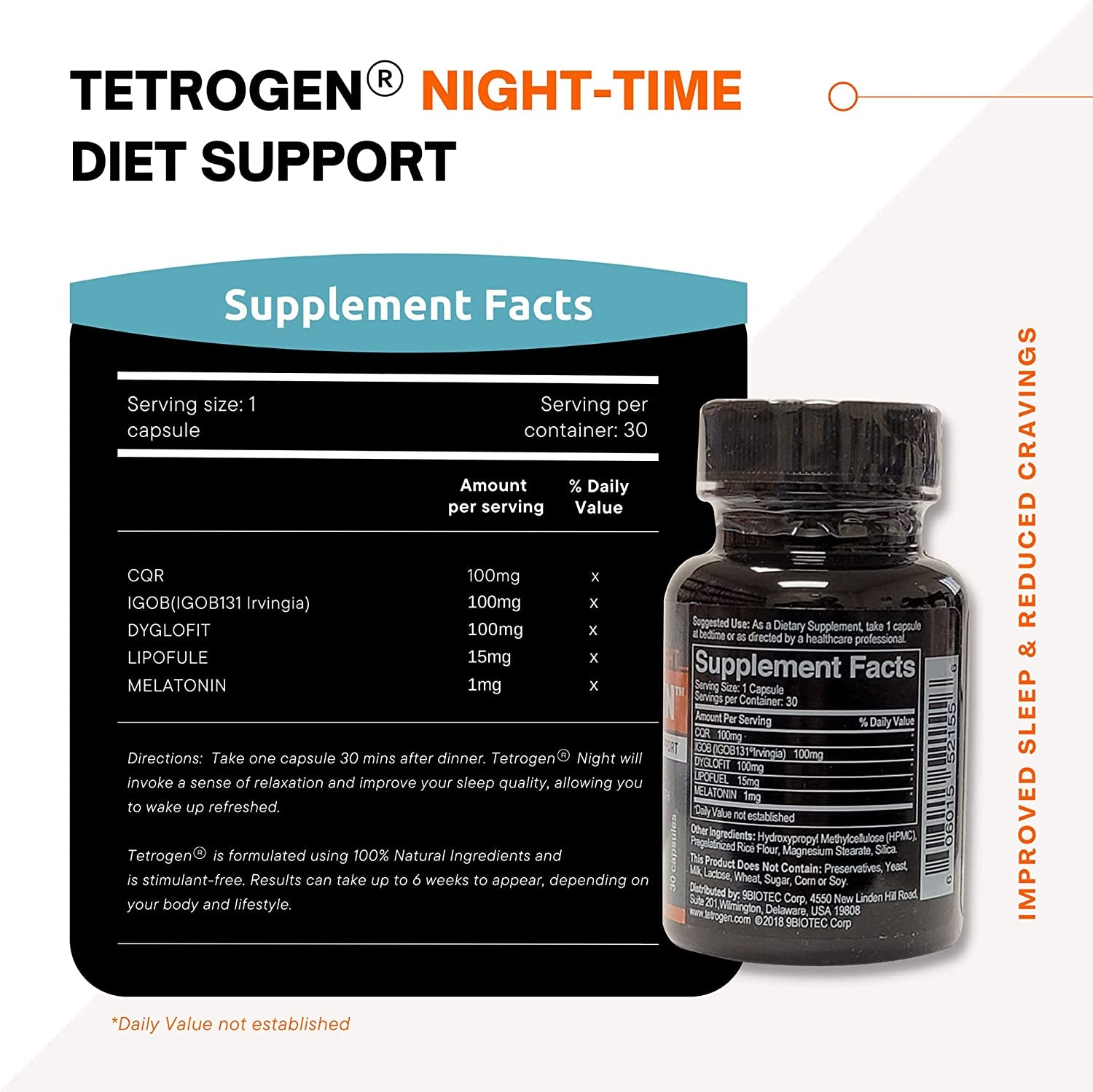 - Green tea in Day caps improves your metabolic rate, curbs cravings, and decreases appetite, addressing your daytime weight management needs without harmful side effects. Night capsules contain 4 Patented ingredients to control late-night cravings and Melatonin to ensure sound sleep.