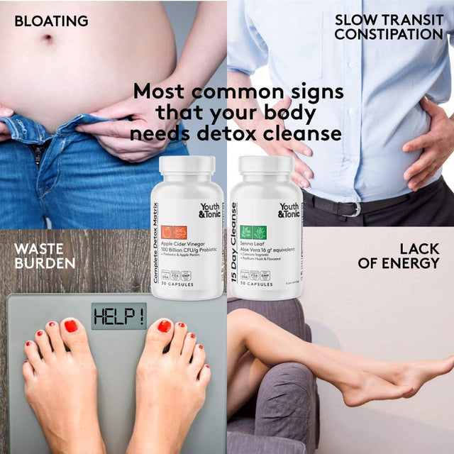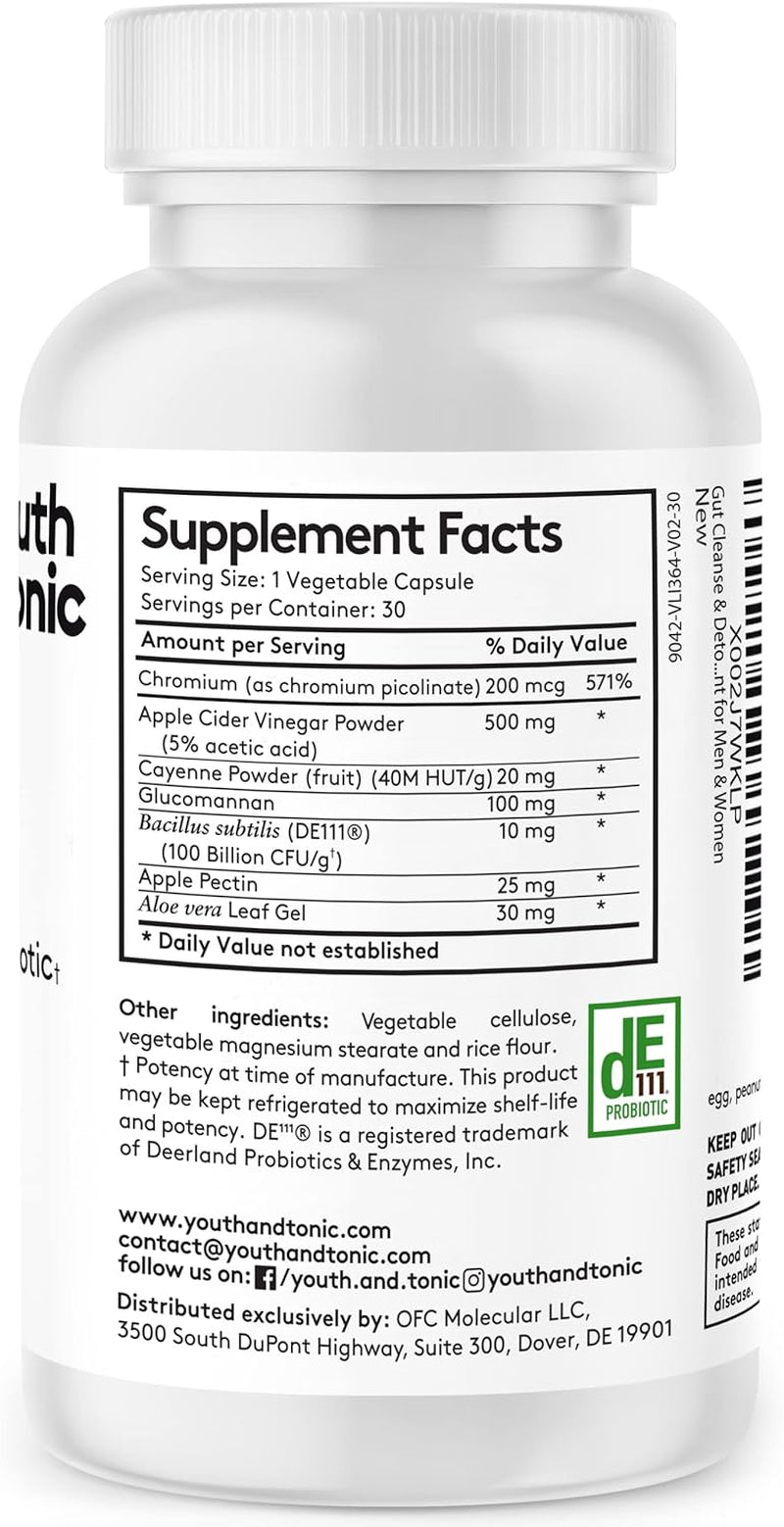 Youth & Tonic Gut Cleanse & Detox Pills | Restore Healthy Intestinal Flora Preventing Digestive Imbalance | Support for Body Cleanse or Weight Management Programs | Supplement for Men & Women