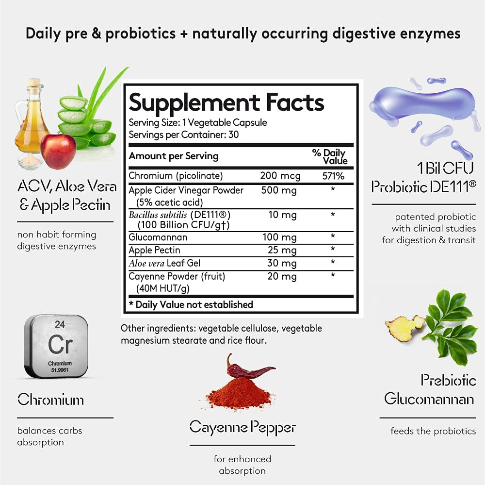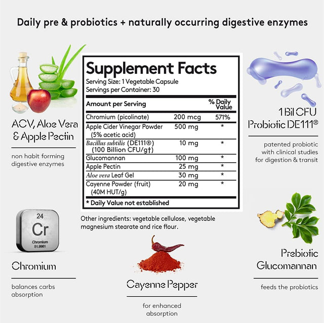 ACV Pills with 100 Bil CFU/g DE111 Probiotics Aloe Vera Apple Pectin Konjac Root Chromium