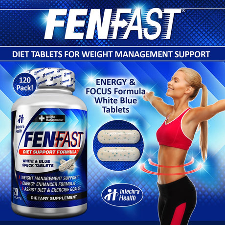 FENFAST Diet Pills Weight Management Support W/ Energy Enhancers, 120 Tablets, Easy to Take