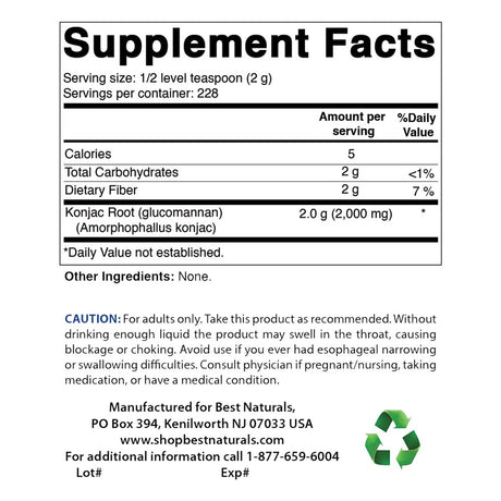 Best Naturals Konjac Root Weight Management Supplement, 2,000 Mg Glucomannan, 1 Lb