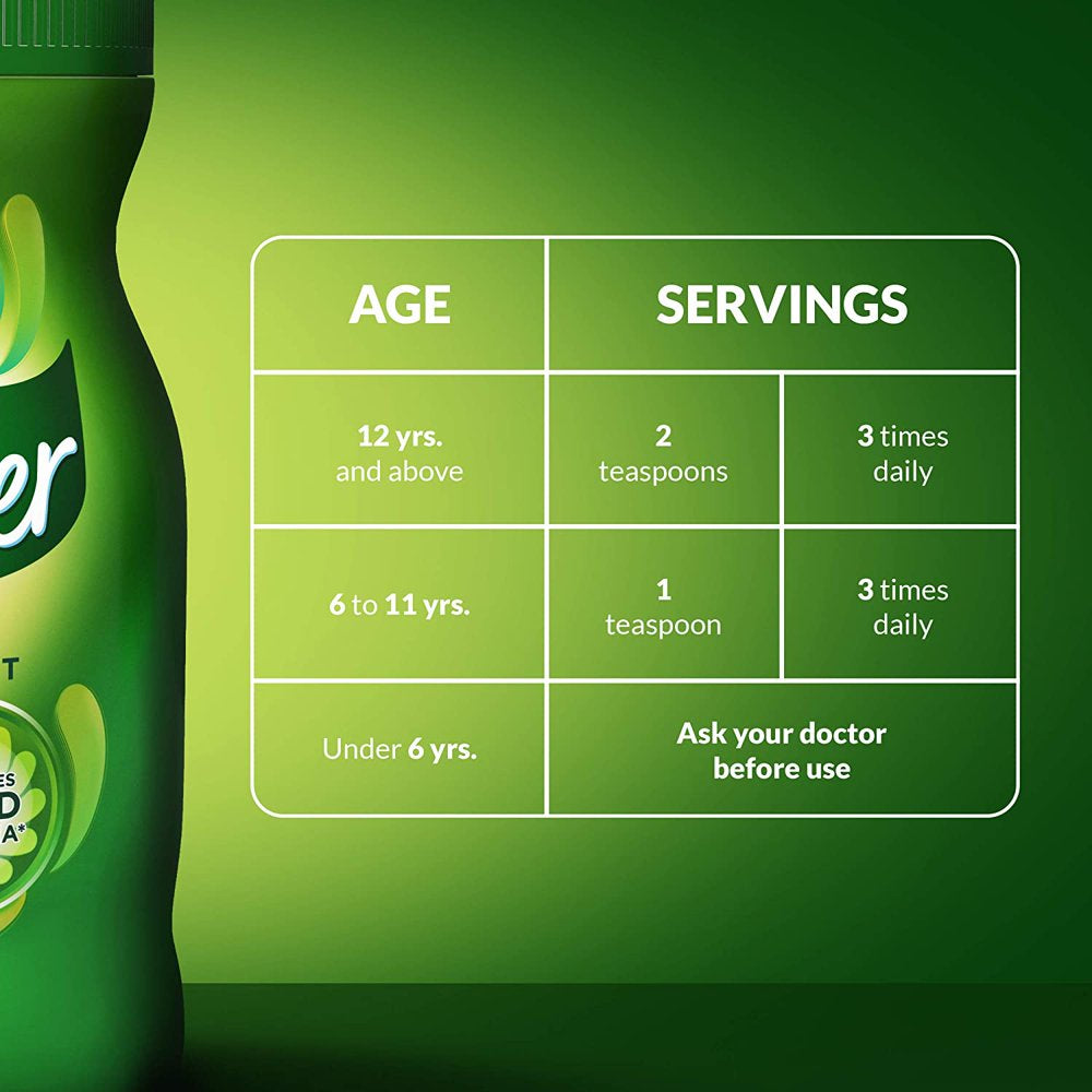 Stir two teaspoons into four to eight ounces of a non-carbonated beverage or soft food three times daily, for ages 12 years and older