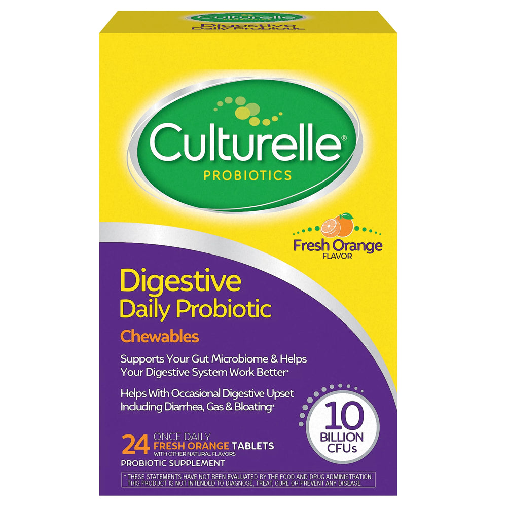 Culturelle Digestive Daily Probiotic Chewable Tablets for Digestive Health, Fresh Orange, 24 Count
