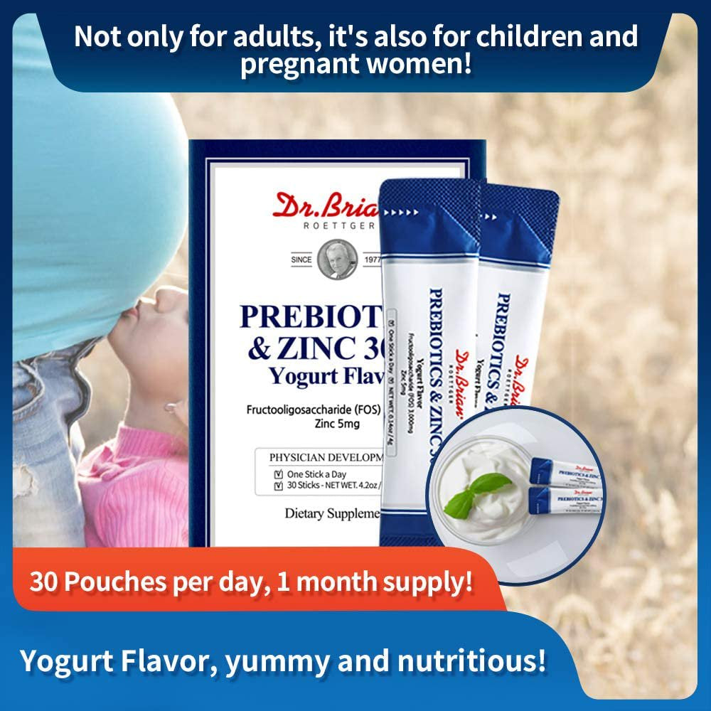 Dr.Brian Prebiotics Supplement Prebiotics for Women Men Strong Constipation Digestive Health W Prebiotics Powder 3000Mg Zinc 5Mg Promote Good Bacteria Probiotics Growth Yogurt Flavor 30 Pouches