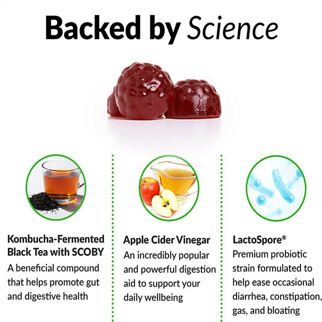 - CONTAINS PURE APPLE CIDER VINEGAR: For even greater health and digestive support, ProbioSlim Kombucha Gummies contain a potent dose of apple cider vinegar, an incredibly popular and powerful digestion aid to support your daily wellbeing.