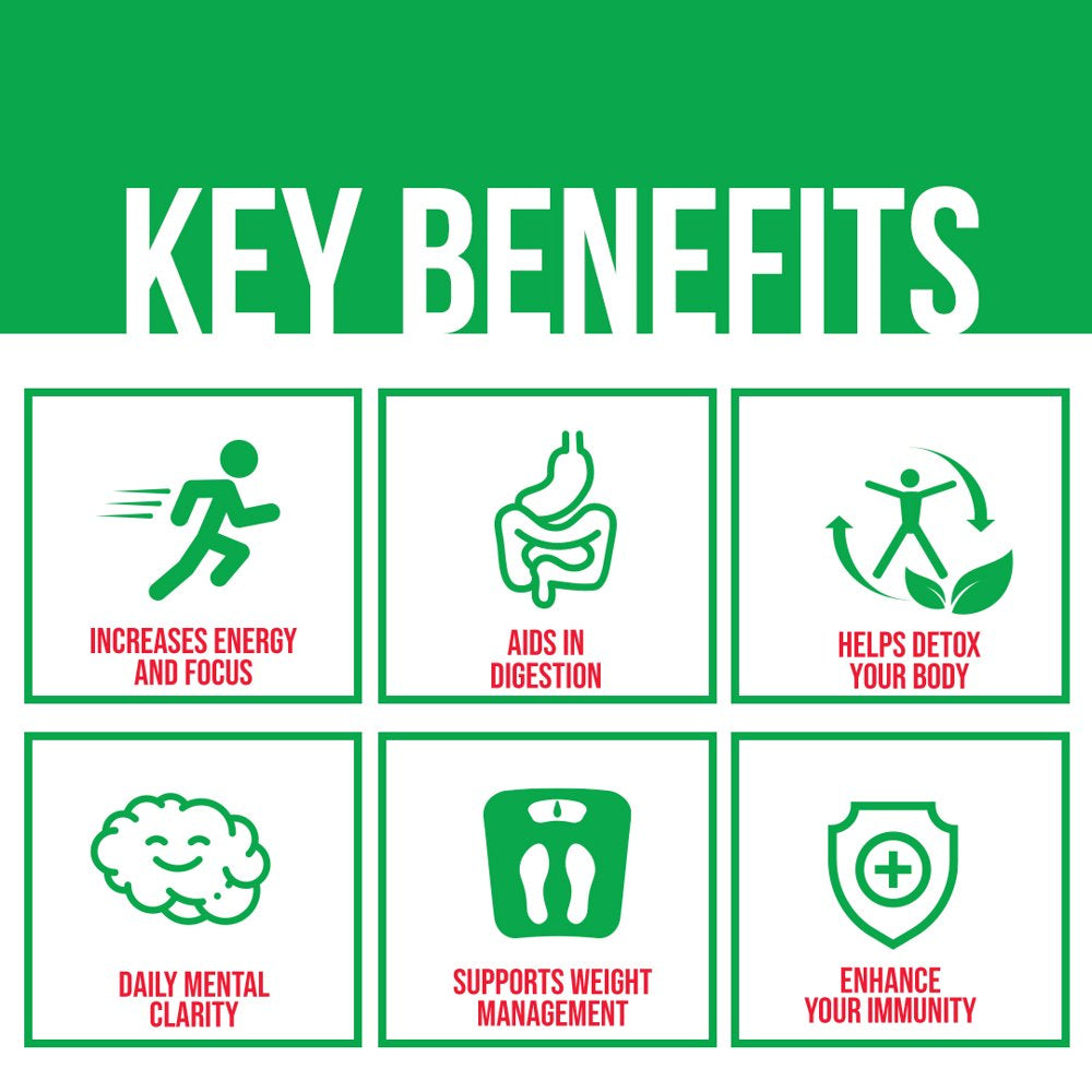 GREENS & REDS SUPERFOOD JUICE HELPS THE BODY NATURALLY DETOX, CLEANSE & DIGEST FOODS A powerful blend of 21 fruits, veggies & superfoods in a convenient greens & reds powder gives you the essential vitamins & minerals your body needs to detox & cleanse. Plus, digestive enzymes and 11 strains of probiotics with 5 billion CFU per serving helps battle bloating & constipation all day long. Superfood Greens Include: Organic Kale, Organic Spirulina, Organic Wheatgrass, Organic Spinach, Organic Alfalfa, Organic Barley Grass, Organic Chlorella, Organic Parsley Leaf and Organic Broccoli. Superfood Reds Include: Organic Strawberry Juice, Organic Raspberry Juice, Organic Blueberry Juice, Organic Tart Cherry, Organic Elderberry, Organic Cranberry, Pineapple Juice, Pomegranate Juice, Beet Juice, Grape Skin, and Reservatol 20%