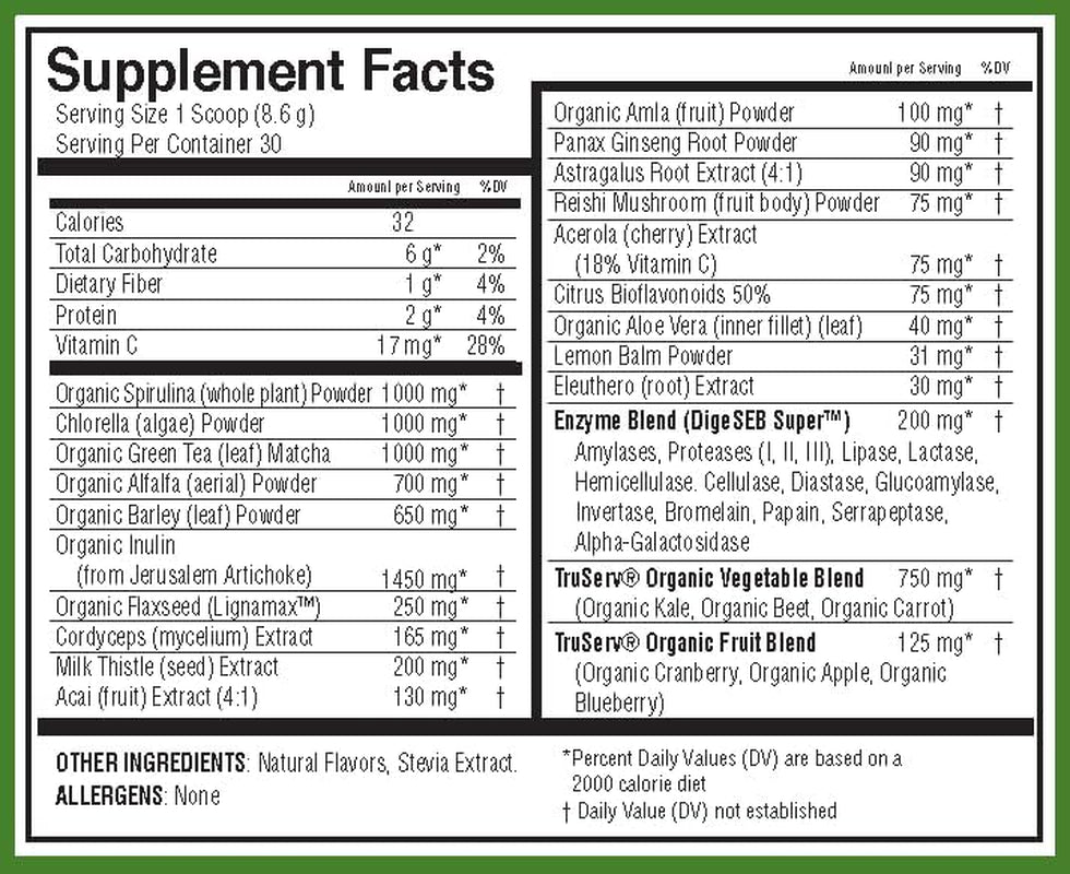 Green Miracle Powder - Whole Food Sourced, Gluten Free, Non-Gmo - Vegan Superfood for Energy, Detox, Immune & Digestive Health - Light Vanilla Flavor, 30 Servings