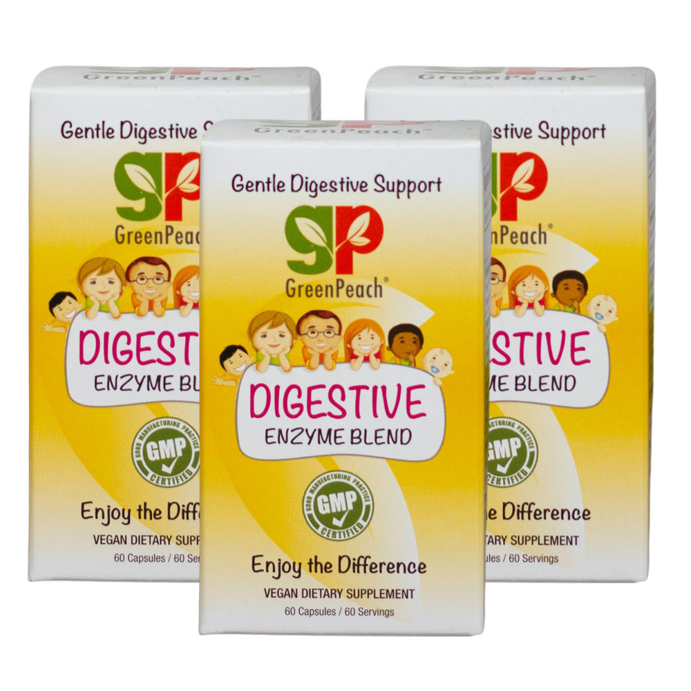 GreenPeach Organic Digestive Enzyme Blend has 8 effective digestive aid enzyme strains that mimic the body’s naturally occurring enzymes for a potent digestion boost that’s also gentle on the system (Health Support). Made in the USA, our essential digestive enzyme for kids is formulated with essential, digestive enzymes to provide upset stomach relief, anti gas relief, and IBS relief.
